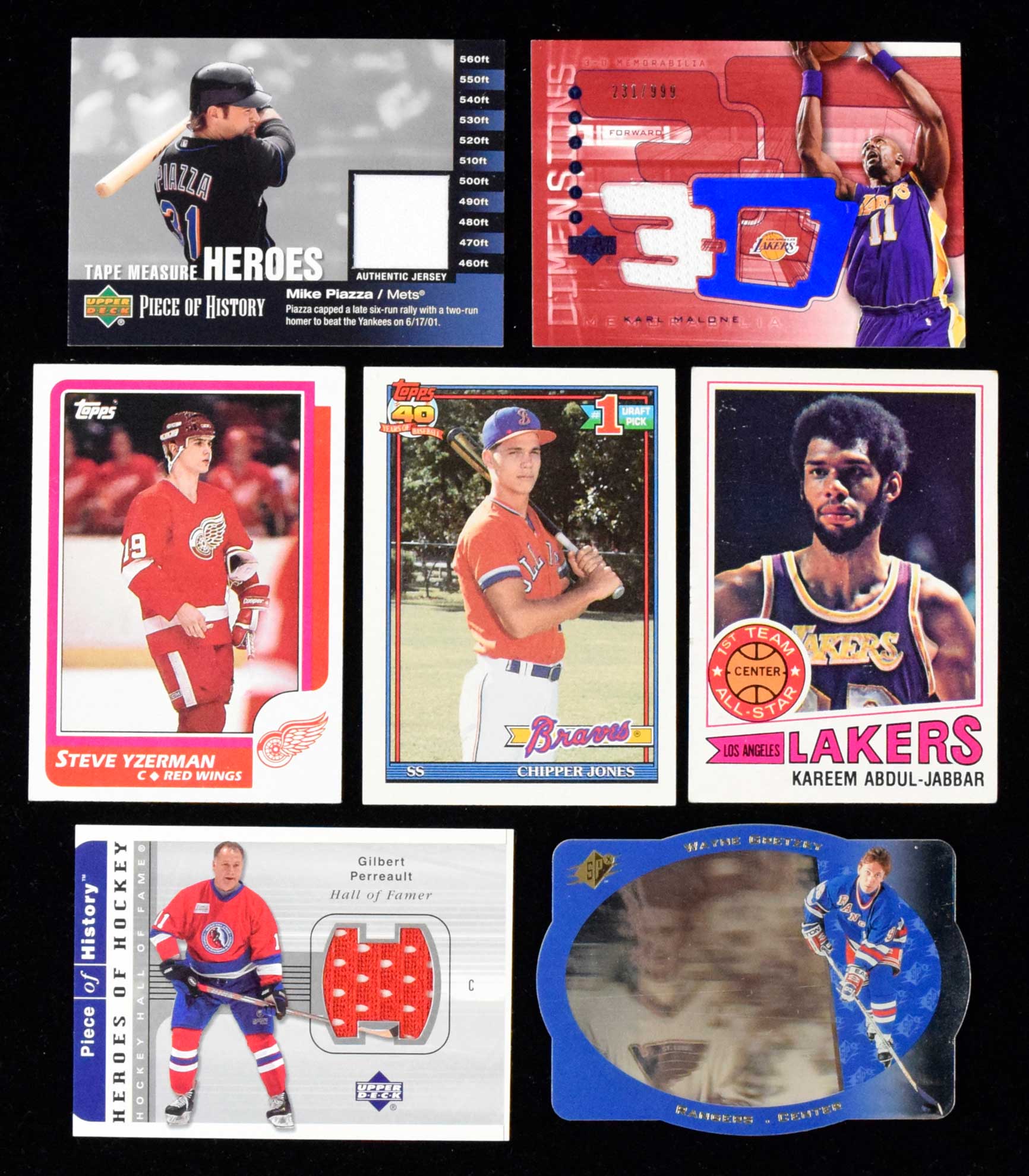 Description:Large lot of modern mixed sports cards incl. Hall of Famers, Rookies, and inserts (strong break value) (Avg. NM) Large lot of modern mixed sports cards with very strong break value including hundreds of stars, Rookies, inserts, and other desirable cards and only a small portion are commons/filler. Mostly 1980s to 2000s hockey, football, basketball, and baseball with some other sports mixed in. There are a handful of 1970s cards (those we have seen are nearly all basketball. While the extreme variety of content (with regard to players, sports, key cards) does not allow for us to elobrate on exactly what is included there is very strong break value with hundreds of cards that would likely land up in (.50) cent and dollar boxes on a dealer table and many which would be priced higher.