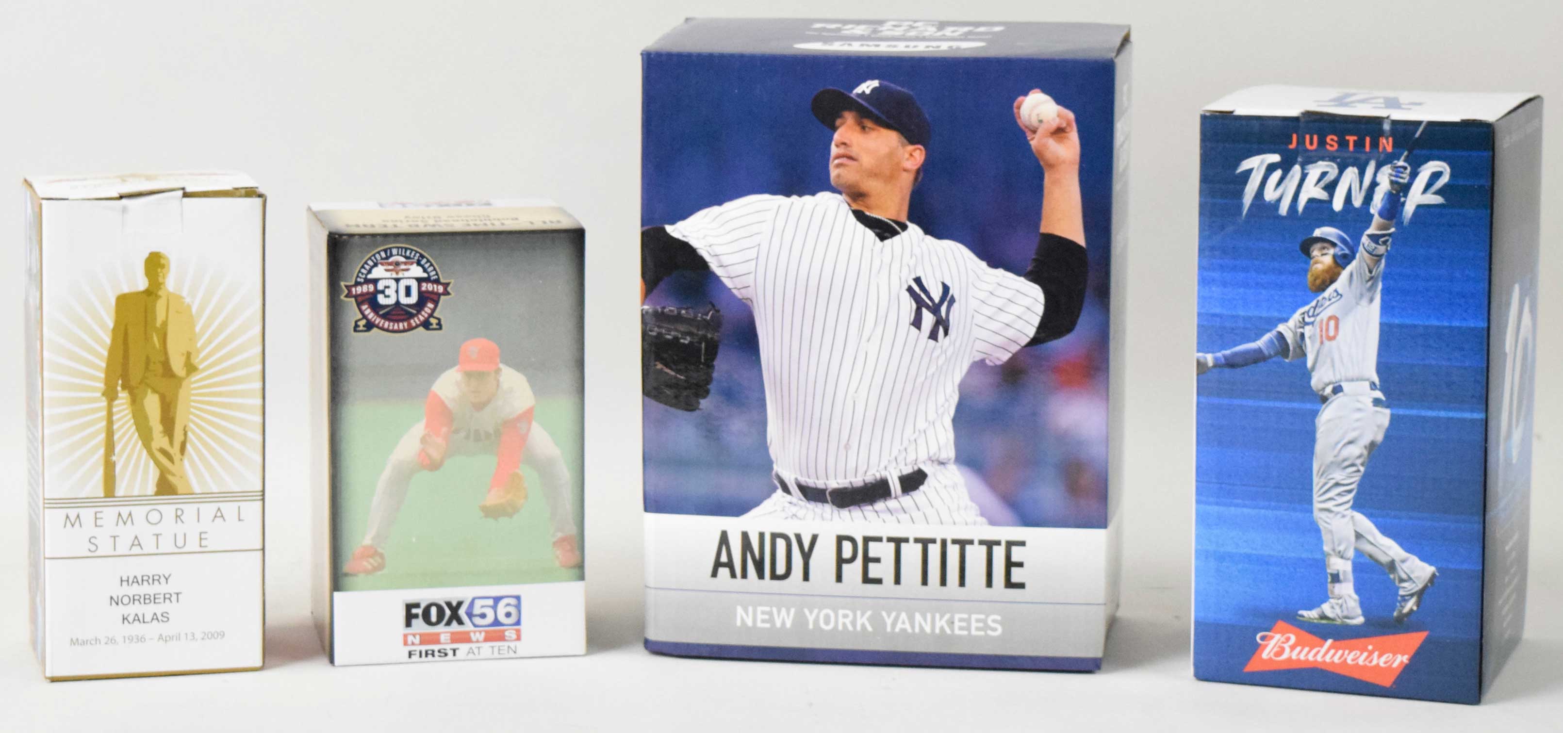 Description:Lot (13) baseball bobbleheads (NM-MT) Lot (13) incl. Andy Pettitte & Gary Sanchez NYY; Justin Turner (2) LAD; Larry Holmes, Scranton; Chase Utley, Scranton; Aaron Nola, Ryne Sandberg & Jamie Moyer (All Lehigh Valley). Also Nick Markakis, Pat Gillick and Harry Kalas. All except Markakis & Gillick are in original boxes. Overall: NM-MT