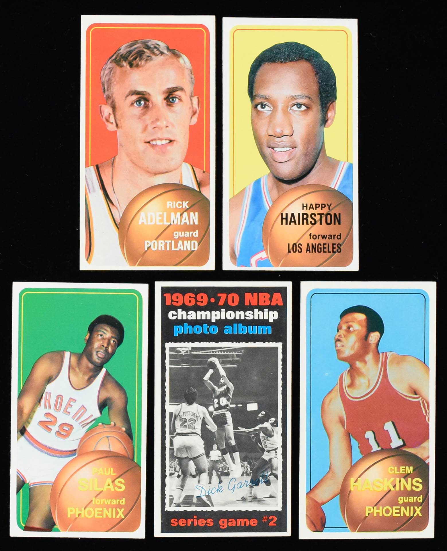 Lot of (56) 1970-71 Topps Basketball cards (PR-NM/MT). Includes #s 1 (back damage), 9, 15, 21, 25, 31, 34, 40, 42, 45, 49, 55, 63, 67, 69, 73, 77, 83, 85, 91, 95, 99, 103, 105, 116, 117, 118, 119, 121, (2) 122, 127, 128, 131, 132, (2) 133, 136, 138, 139, 142, 144, 145, 146, (2) 147, 149, 152, 153, 154, 159, 161, (2) 162, 165, and 169. Various conditions throughout the lot. Most appear to average EX-EX/MT overall. Range: PR-NM/MT