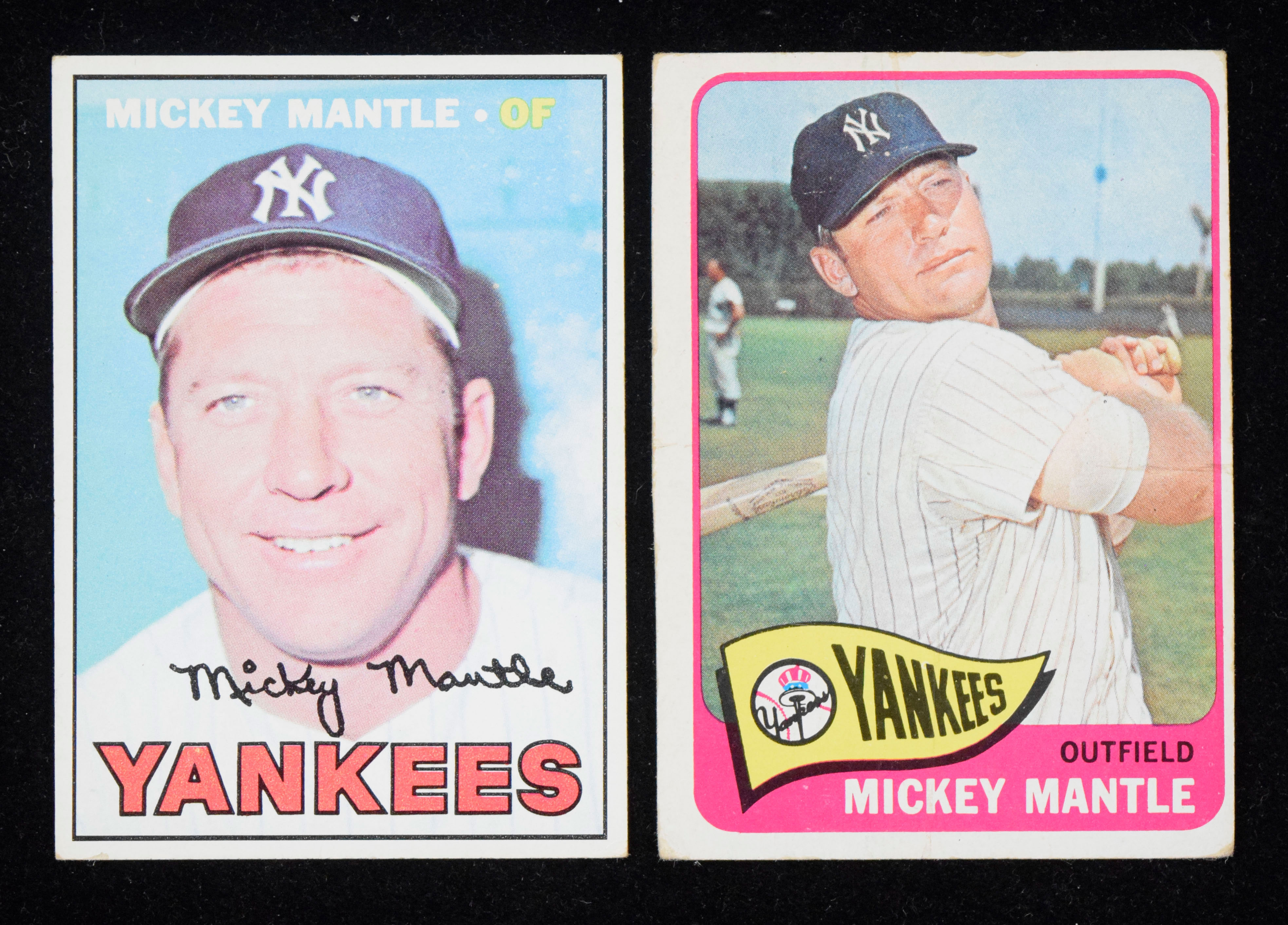 Description:Lot of (2) Mickey Mantle cards from 1965 & 1967 Topps (PR-VG). Lot includes 1965 Topps #350 Mantle (PR) and 1967 Topps #150 (VG). Outstanding lot of Mantle cards from two classic years. Range: PR-VG.