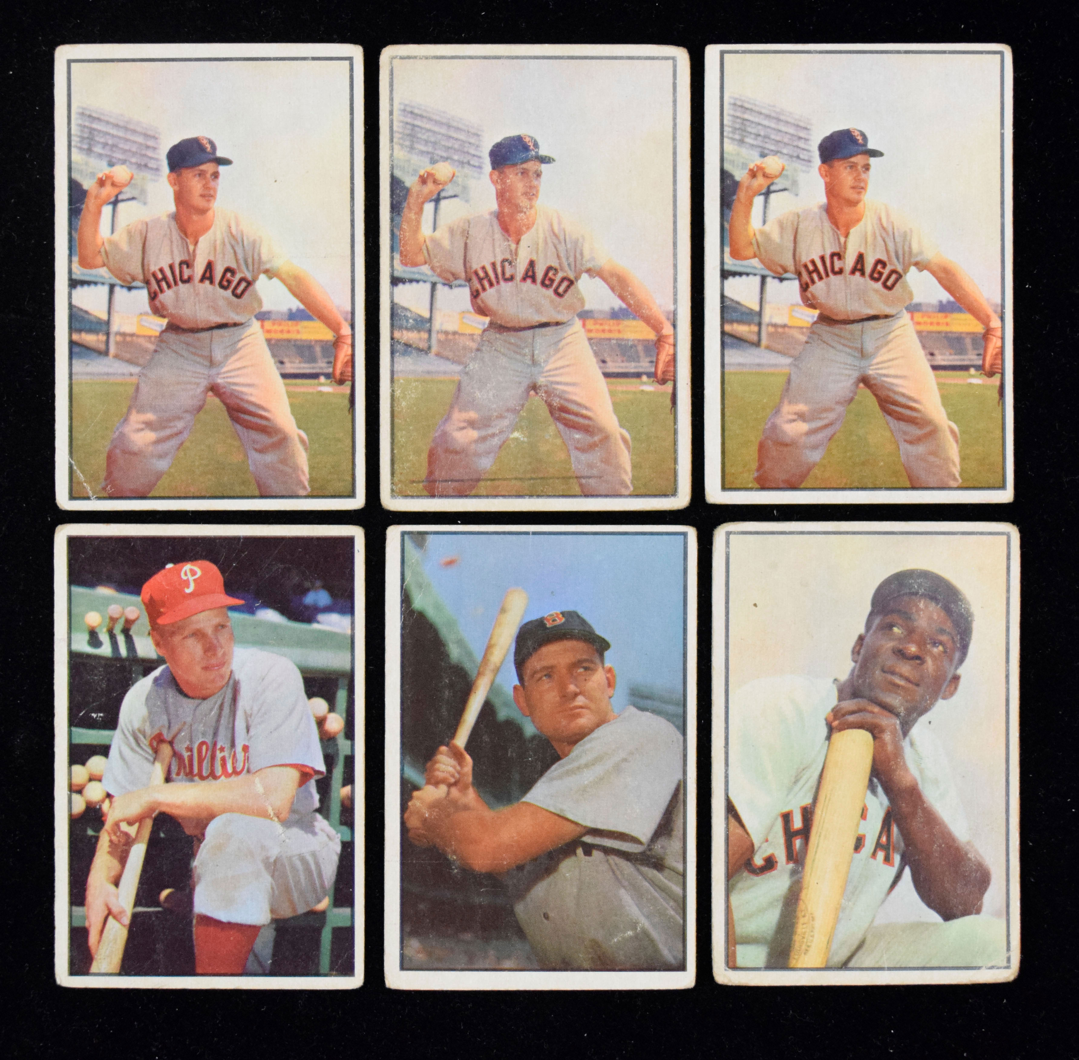 Description:"Lot of (96) 1953 Bowman Color cards, including Fox, Ashburn & Minoso (PR-EX). Nice quantity of cards from the classic 1953 Bowman Color set, featuring minor stars, commons, Hall of Famers and (7) cards from the final two series (#s 113-160). The lot is generally in low-grade condition and there is light to moderate duplication in the lot. Highlights include (3) #61 George Kell, #10 Richie Ashburn, (2) #36 Minnie Minoso, and (3) #18 Nellie Fox. Most cards appear PR-FR, with a few better. Range: PR-EX. "