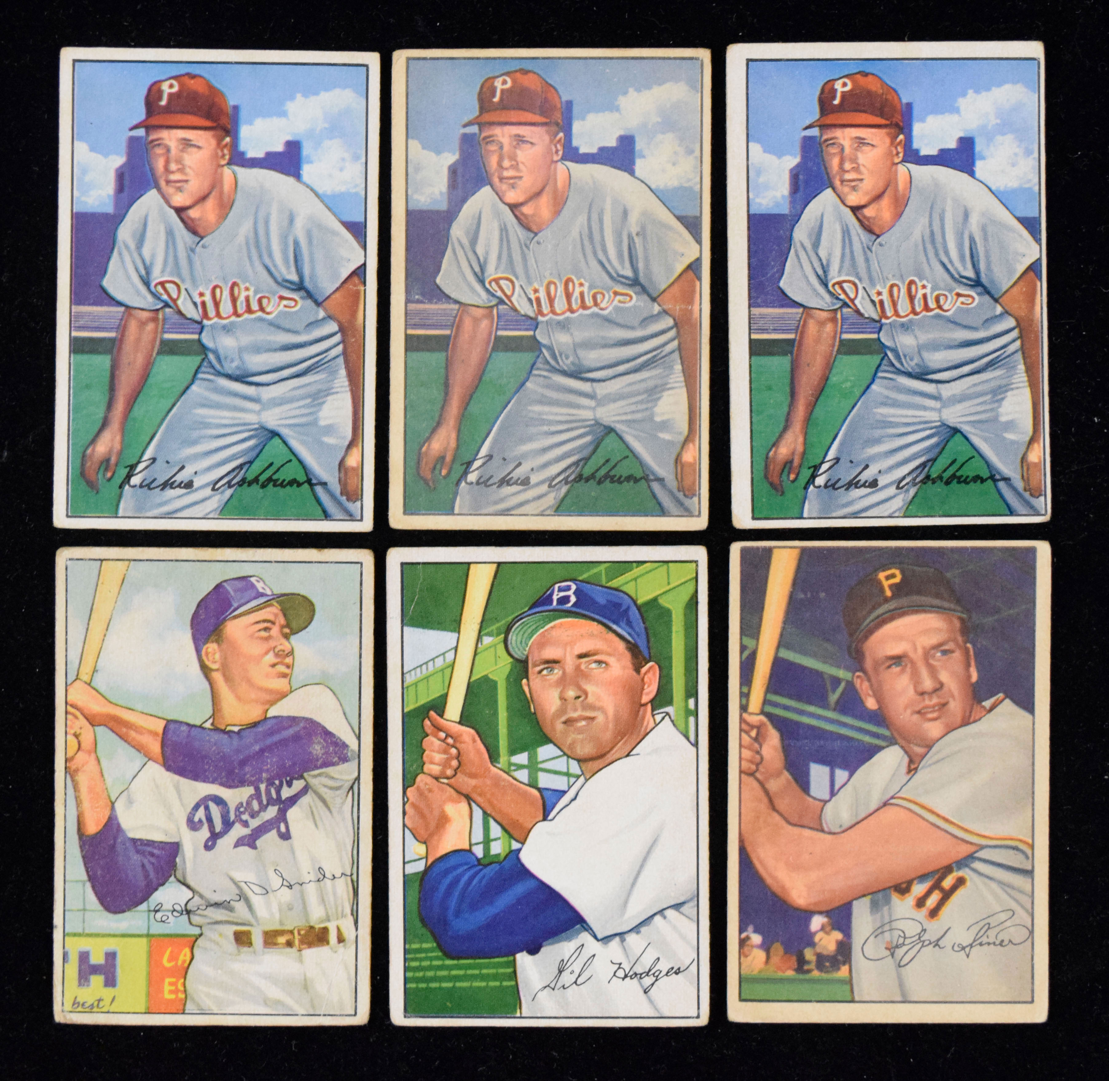 Description:"Lot of (11) 1952 Bowman stars and HOFers, including (3) Richie Ashburn (PR-VG/EX). Lot includes (3) #11 Ralph Kiner, #23 Bob Lemon, #24 Carl Furillo, (3) #53 Richie Ashburn, #80 Gil Hodges, #116 Duke Snider and #115 Larry Doby. Most cards appear VG. Range: PR-VG/EX. "
