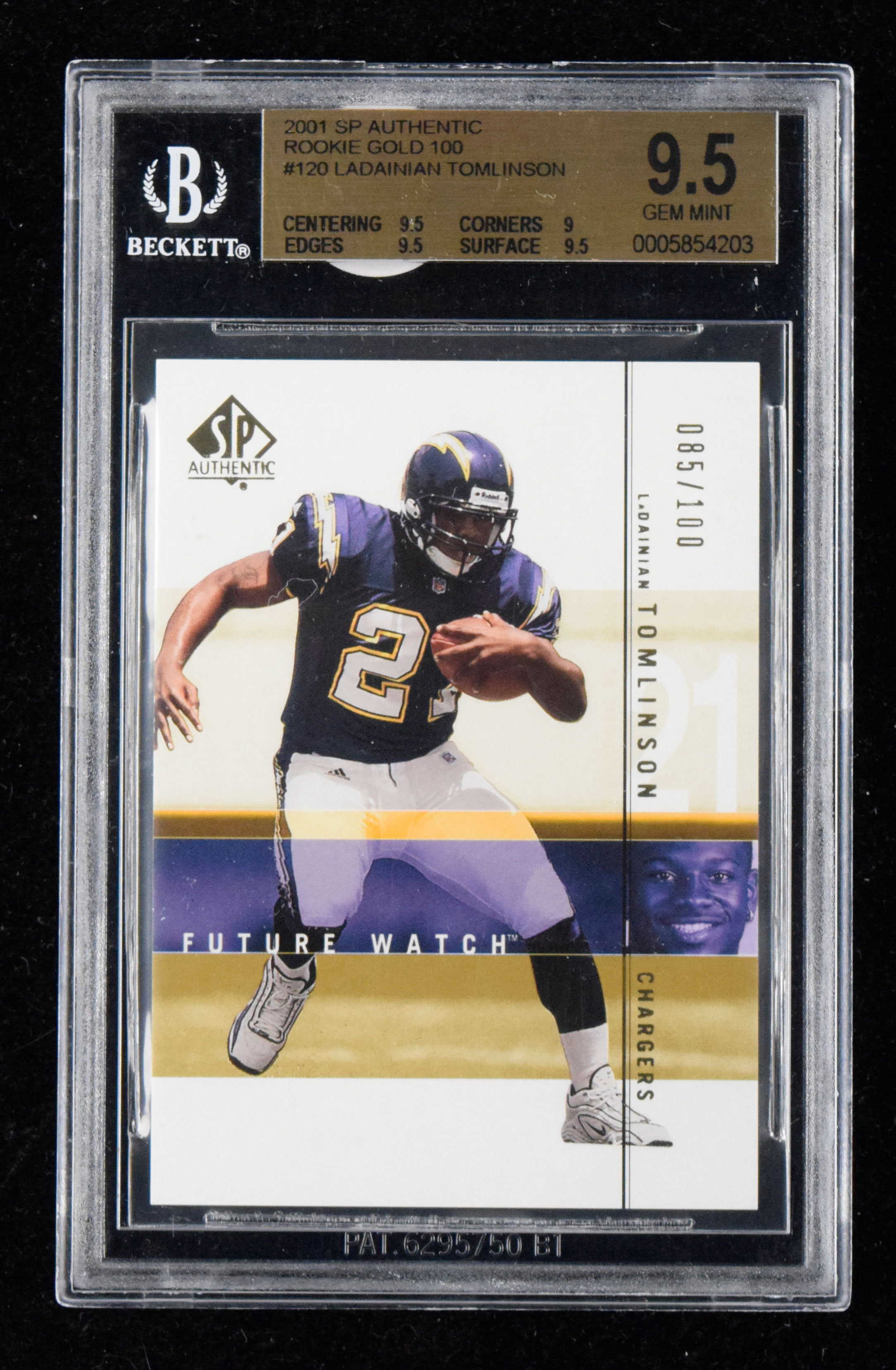 2001 SP Authentic "Future Watch Gold" #120 LaDainian Tomlinson rookie parallel card #ed 85/100 graded Beckett 9.5 (GEM MINT).