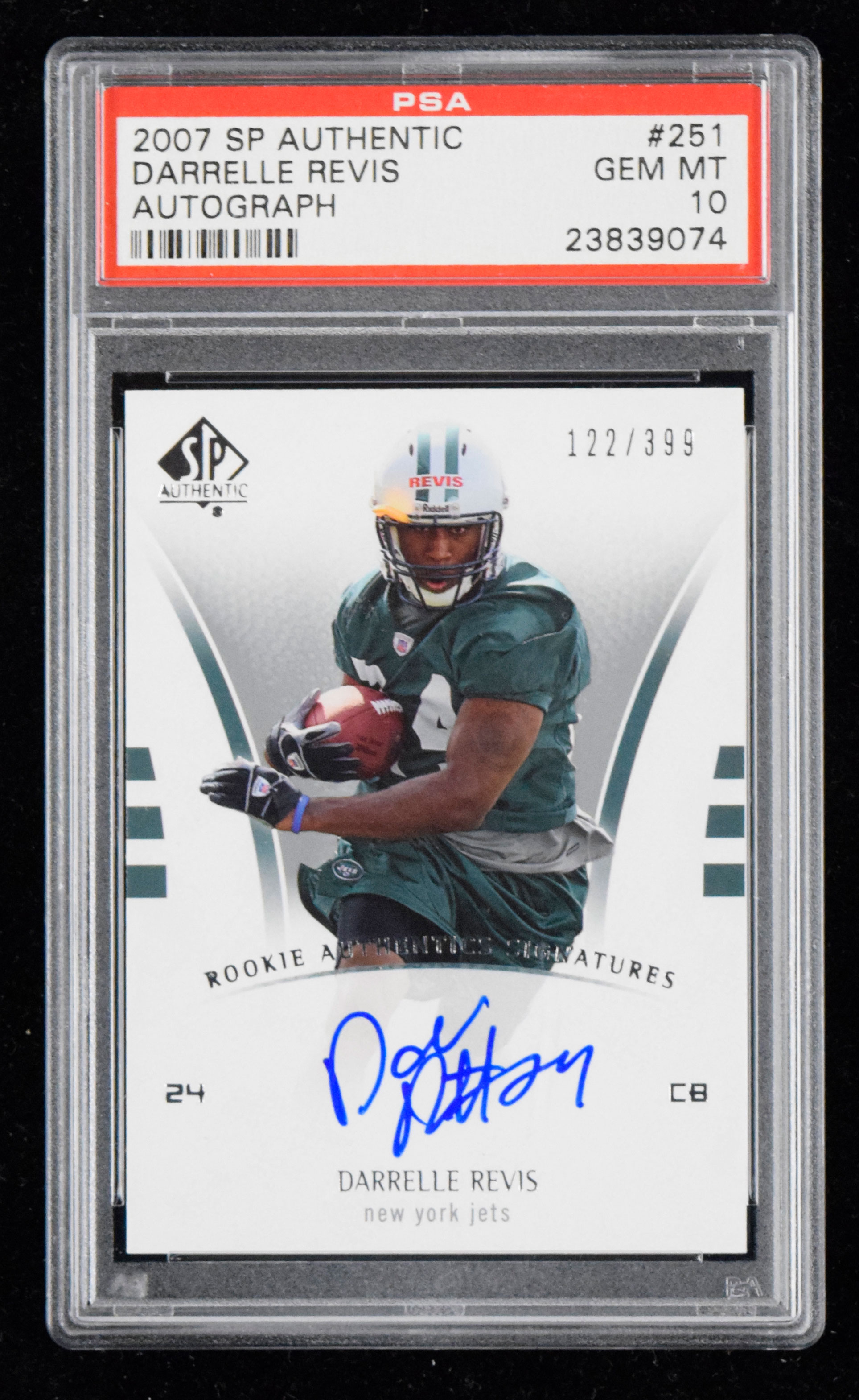 2007 SP Authentic #251 Darrelle Revis signed rookie card numbered 122/399 graded PSA 10 (GEM MINT).