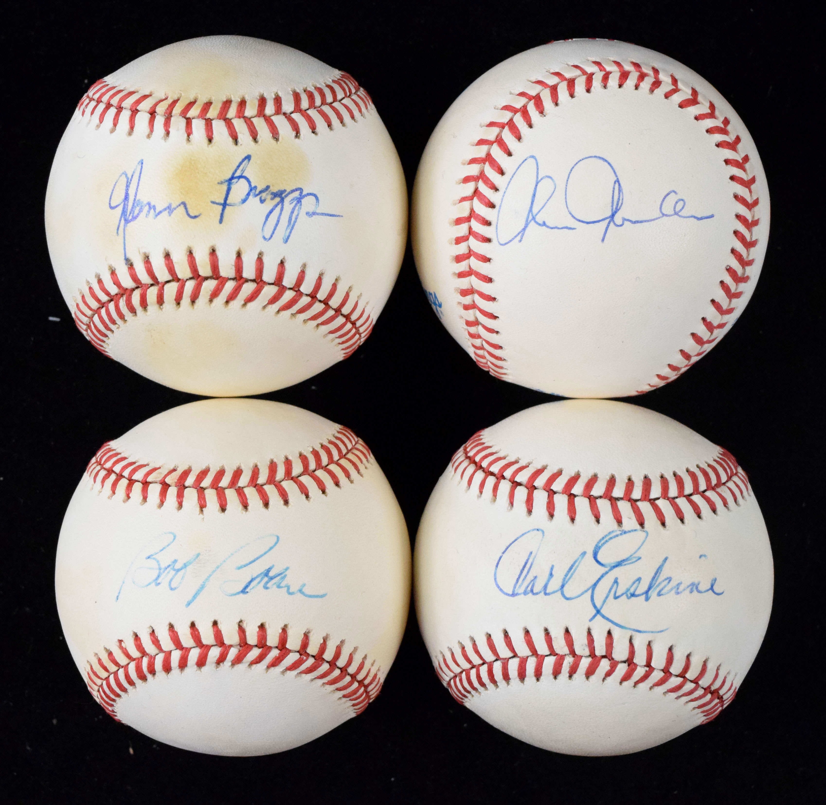 Description:Lot of (12) signed baseballs (GD-NM/MT). All are signed on official NL, AL, or MLB balls. Includes Jim Bouton, Jeff Burroughs, Bert Campaneris, Carl Erskine, Chris Chambliss, Carlos Beltran, Bob Boone, Dave Cone (personalized), Jack Cullen, Glenn Braggs, Fritzy Connally, and Jeff Cook. Signatures rate 6/7 (Cook) to 9/10 (avg 8) out of 10. Most balls appear to average VG/EX-EX overall due to various degrees of toning (Bouton and Campaneris most toned). Range: GD-NM/MT