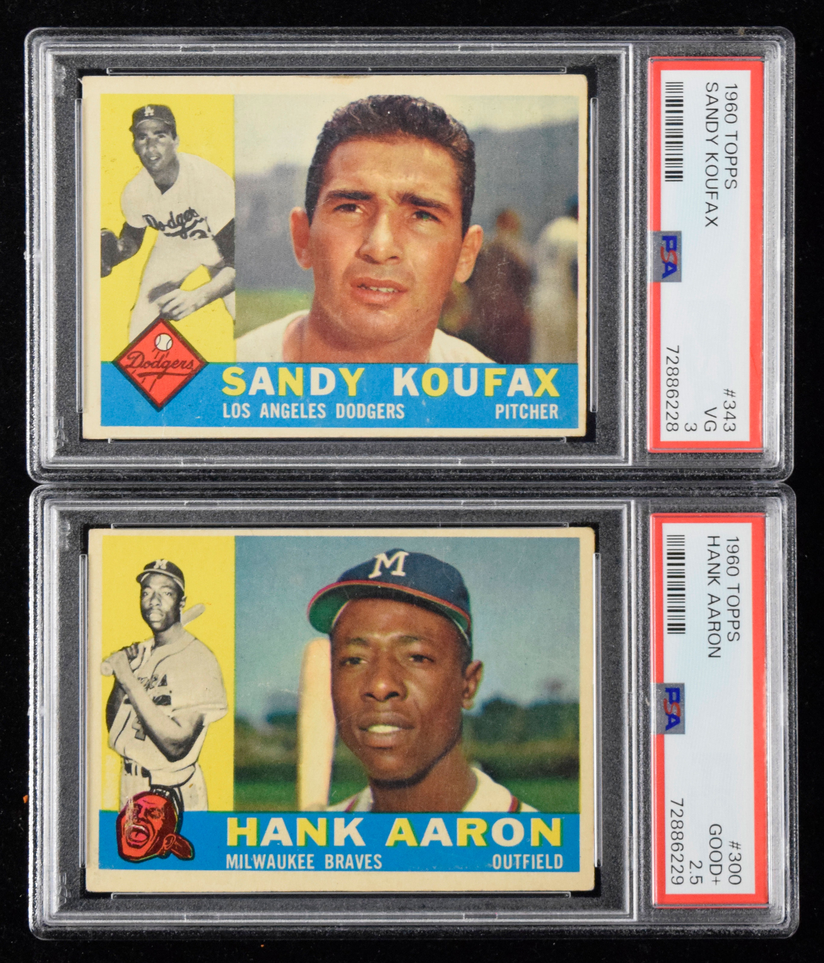 1960 Topps #s 300 Hank Aaron (PSA 2.5 GD+) and 343 Sandy Koufax (PSA 3 VG).