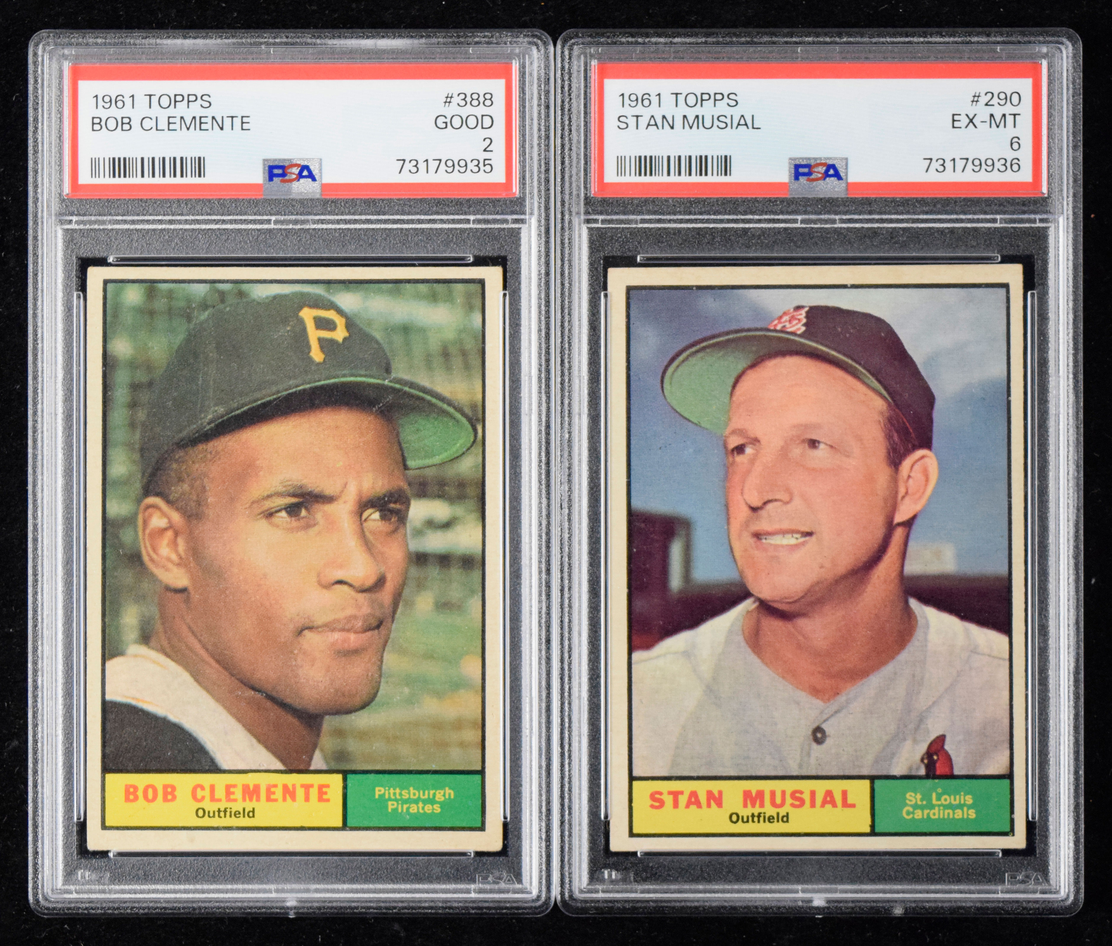 1961 Topps #s 290 Stan Musial (PSA 6 EX/MT) and 388 Roberto Clemente (PSA 2 GD).