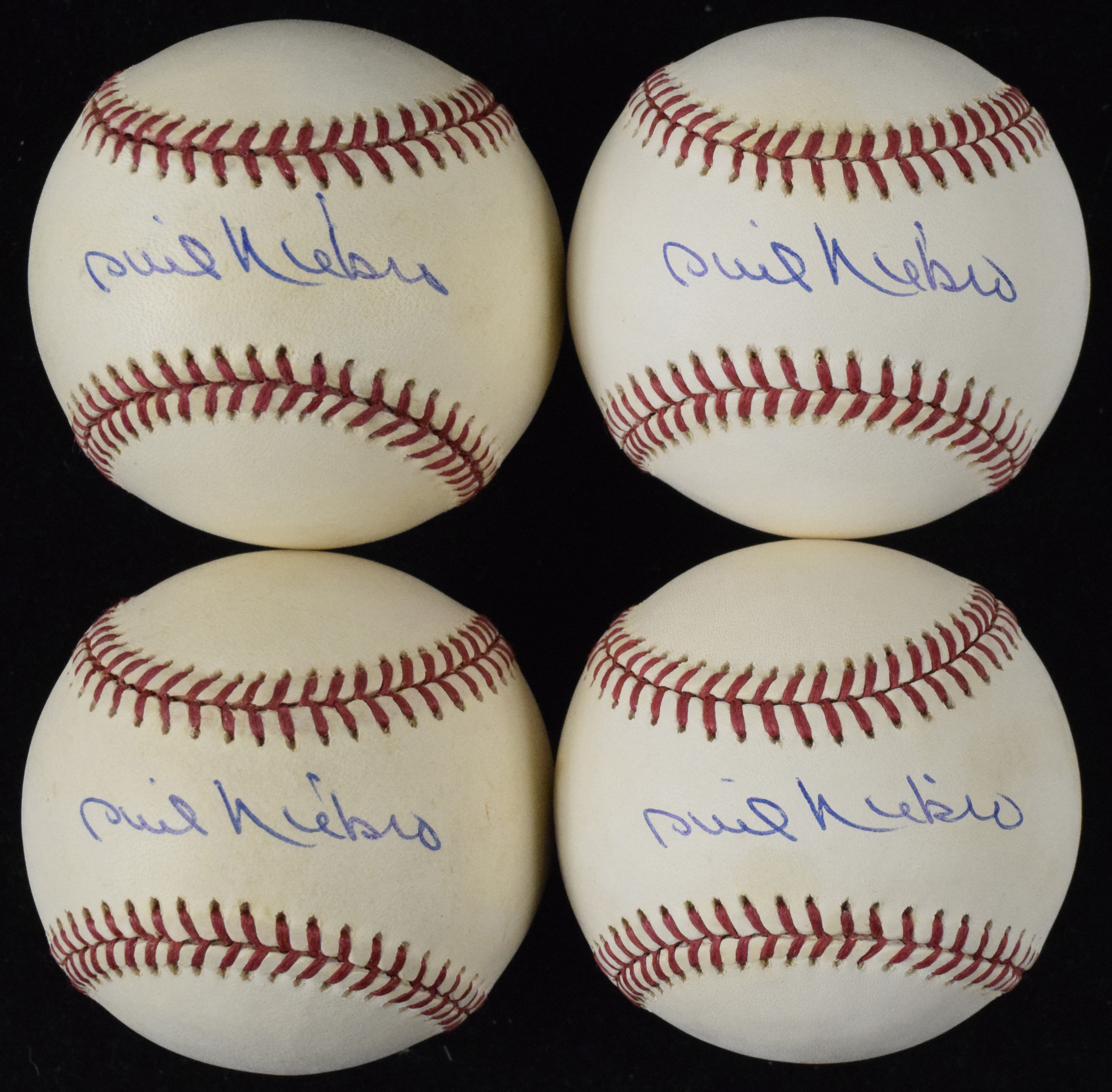 Description:Lot of (9) Phil Niekro signed L.Coleman NL baseballs (VG/EX-EX/MT). Niekro signed the sweet spot of each ball in blue ink. Signatures rate 7/8 to 9/10 out of 10. Most balls appear to average EX overall due to various degrees of toning. Range: VG/EX-EX/MT