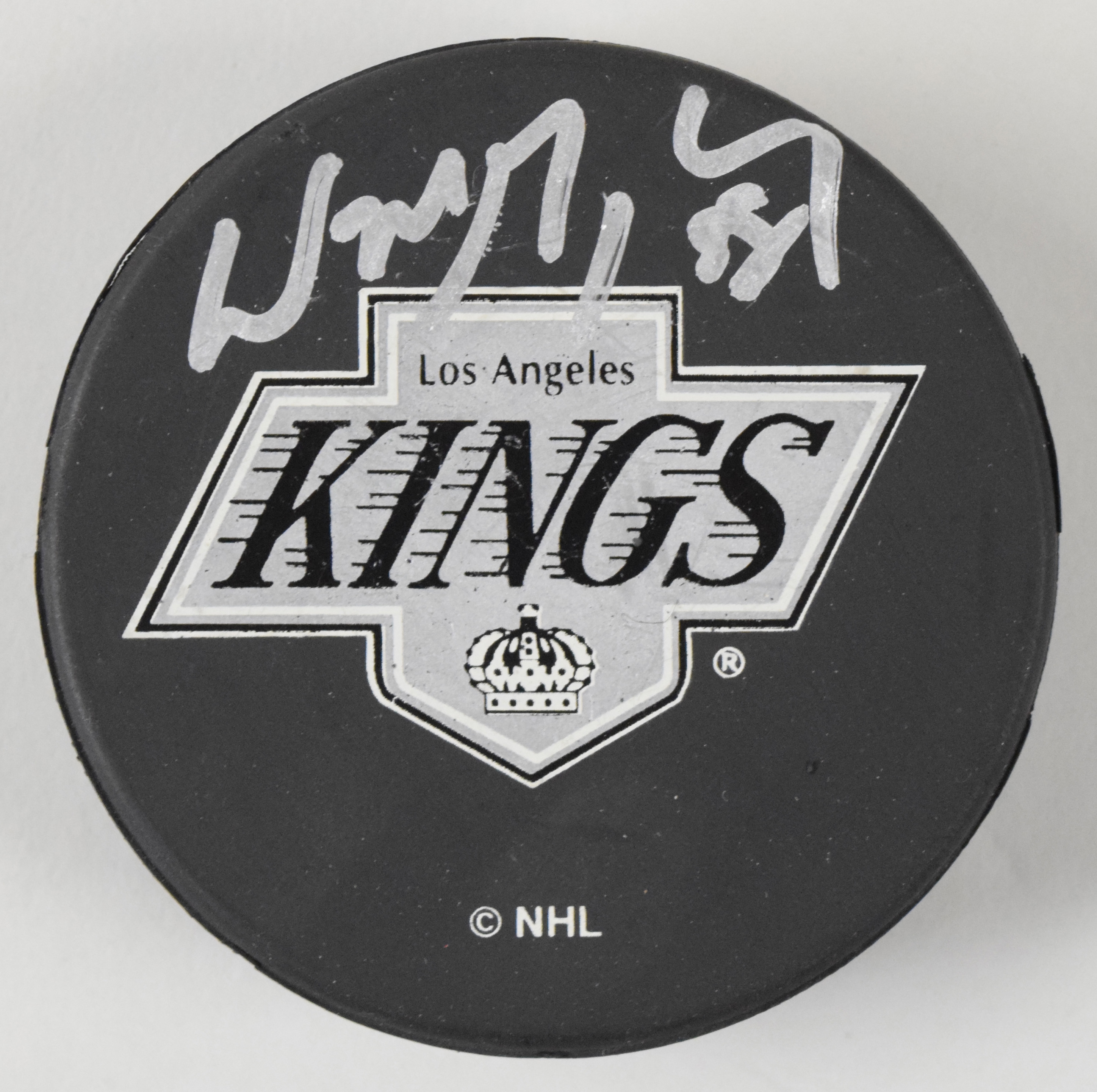 Wayne Gretzky signed Los Angeles Kings hockey puck (NM). Gretzky signed the puck in silver marker. Signature rates 8/9 out of 10: NM