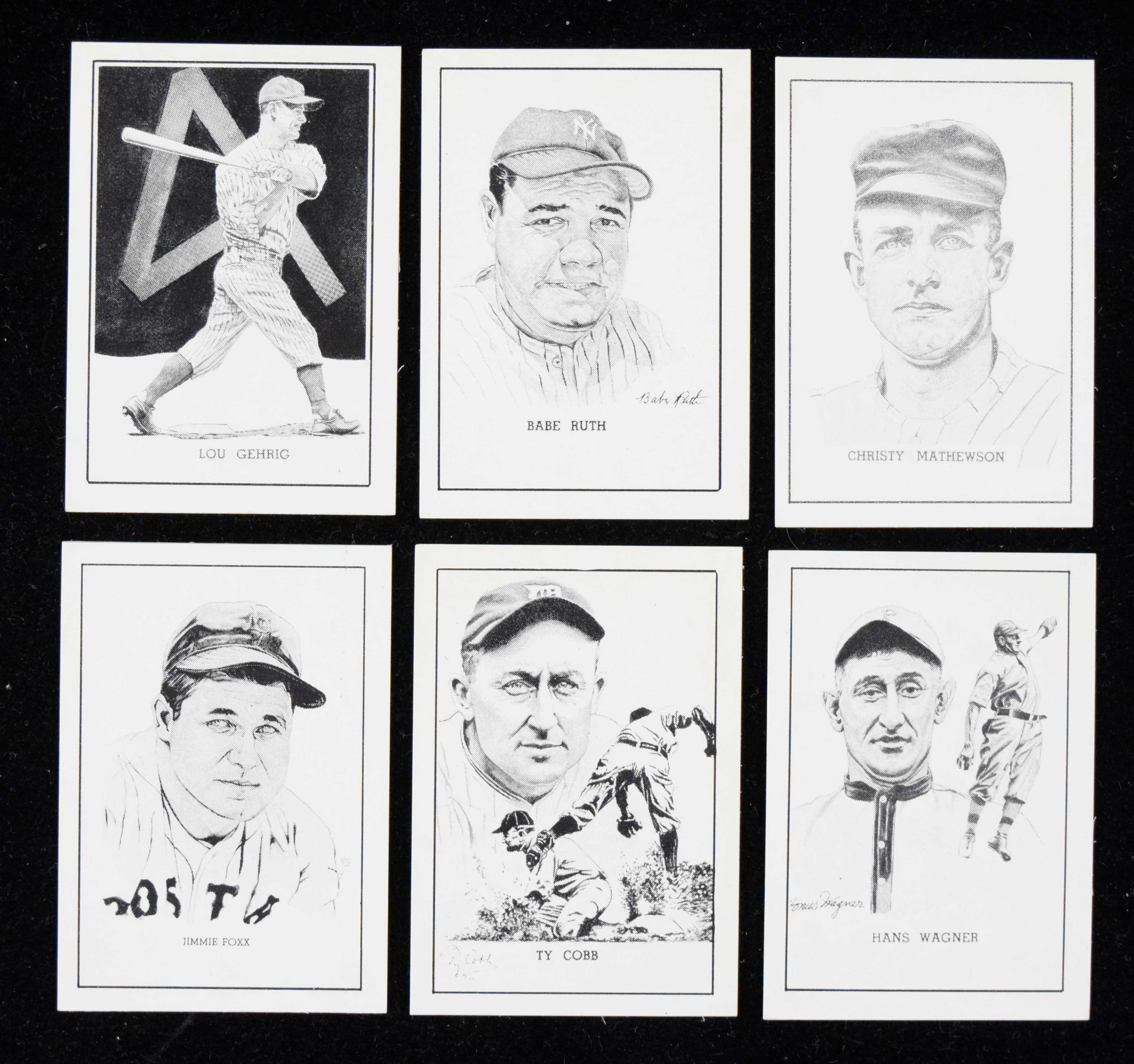 Description:Partial set of (61) 1950-56 Callahan Hall Of Fame baseball cards (PR-NM/MT). Includes Babe Ruth, Christy Mathewson, Lou Gehrig, Ty Cobb, Ed Delahanty, Mickey Cochrane misspelled Cochran, Connie Mack, Frank Frisch, Buck Ewing, Mordecai Brown, Joe Tinker, John McGraw, Clark Griffith, Johnny Evers, Rube Waddell, Cy Young, Roger Bresnahan, Joe McGinnity, Eddie Plank, Mike "King" Kelly, Al Spalding, Jimmie Collins, Nap Lajoie, Ed Walsh, Wilbert Robinson, Kid Nichols, Hugh Jennings, Herb Pennock, George Sisler, Grover Alexander, Lefty Grove, Pie Traynor, Cap Anson, Candy Cummings, Jesse Burkett, Dan Brouthers, Frank Chance, George Wright (PR), Charles Comiskey, Fred Clarke, Jack Chesbro, Charles Radbourne, Mel Ott, Jim O'Rourke, Jimmie Foxx, Tommy McCarthy, Hugh Duffy, Rogers Hornsby, Carl Hubbell, Honus Wagner, Charlie Gehringer, Walter Johnson, Eddie Collins, Tris Speaker, Willie Keeler, Henry Chadwick, Ban Johnson, Morgan Bulkeley, Alexander Cartwright, Kennesaw Lanis, and Baseball Hall Of Fame (exterior). Various conditions throughout the lot. Most cards appear to average EX-EX/MT overall with issues mainly due to centering rather than structural wear. Range: PR-NM/MT