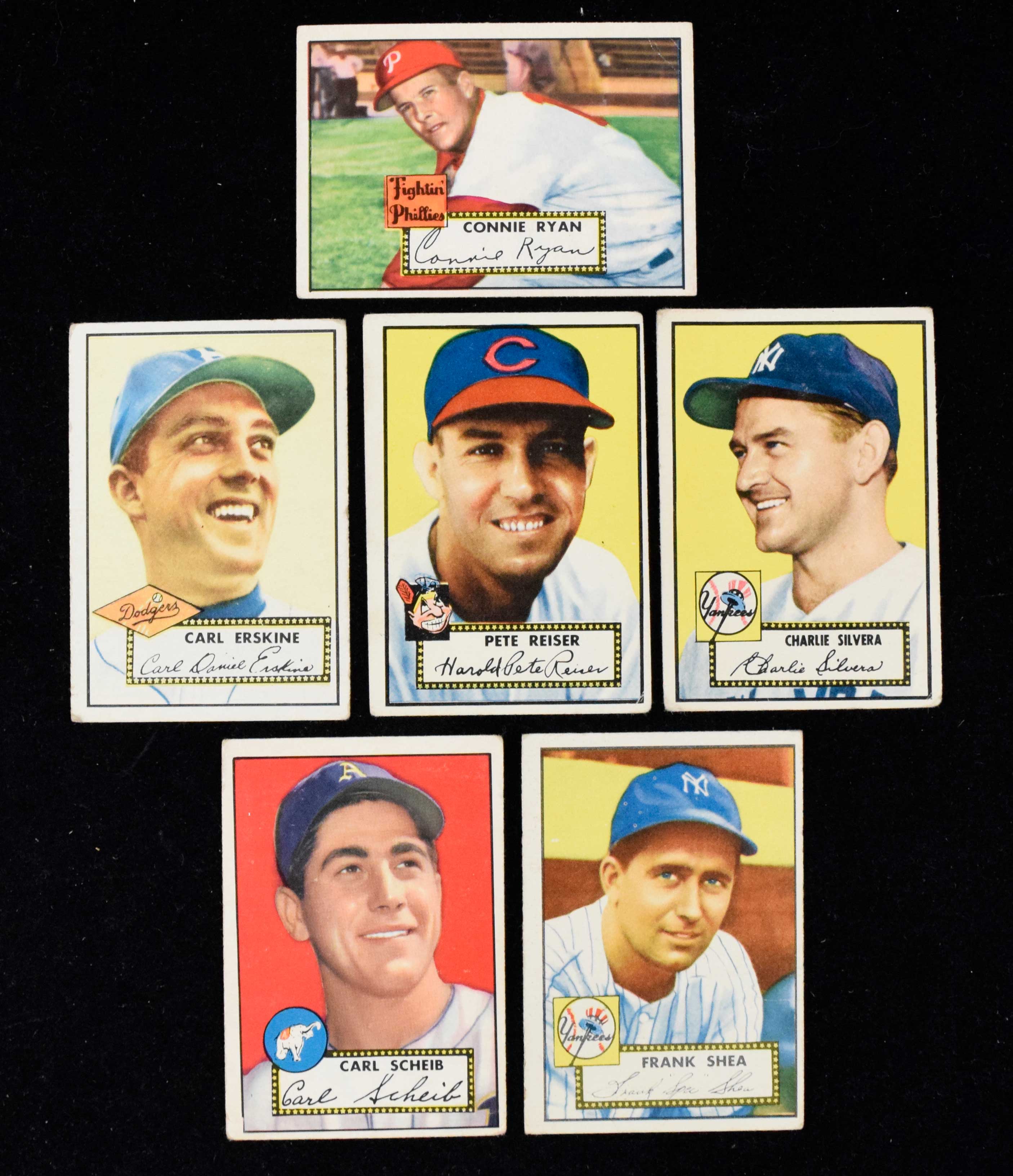 Lot of (65) 1952 Topps Baseball cards (PR-VG). All have red backs unless noted otherwise. Includes #s 21, 28 black, 30, 47 black, 51, 53 black, 56 black, 58, 58 black, 60, 61 black, 64 black, (2) 69, 69 black, 78, 79 black, (2) 103, 104, 105, (2) 107, 111, 113, 116, 120, 131, 145, 163, 166, (2) 168, 169, 170, 171, (2) 172, 174, 177, 179, 180, (2) 181, (2) 187, 189, 192, 194, 204, 208, 211, 220, 232, (2) 242, 247, 248, 249, 250, 252, 266, 281, 282, and 310. Various conditions throughout the lot, but most are fairly low grade averaging GD overall, with some PR-PR/FR due to tape or other forms of back damage. Range: PR-VG