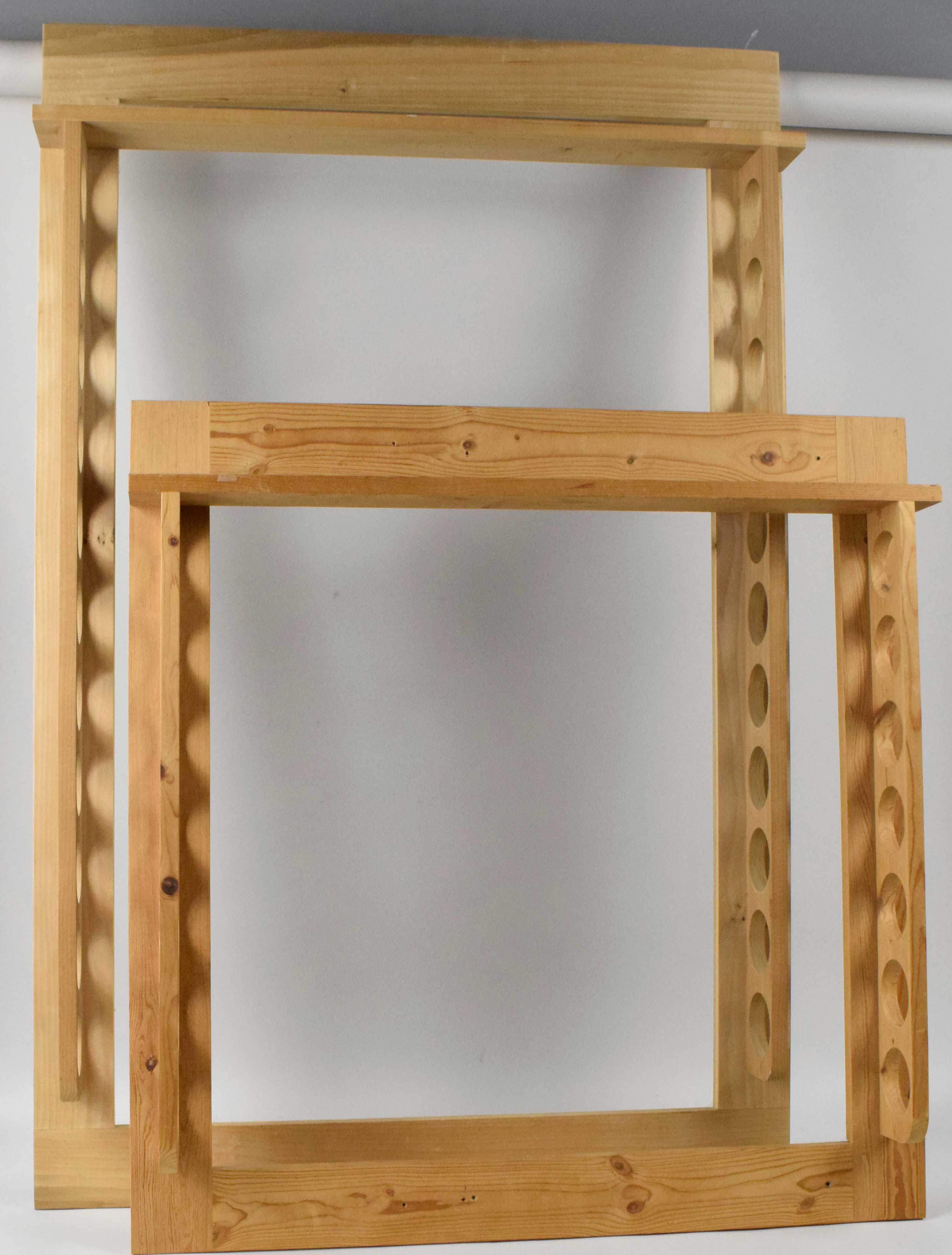 Description:Lot of (2) baseball bat racks (NM overall). One measures 35"x54", and has spaces for (11) bats. The other measures 35"x36", and has spaces for (7) bats: NM overall