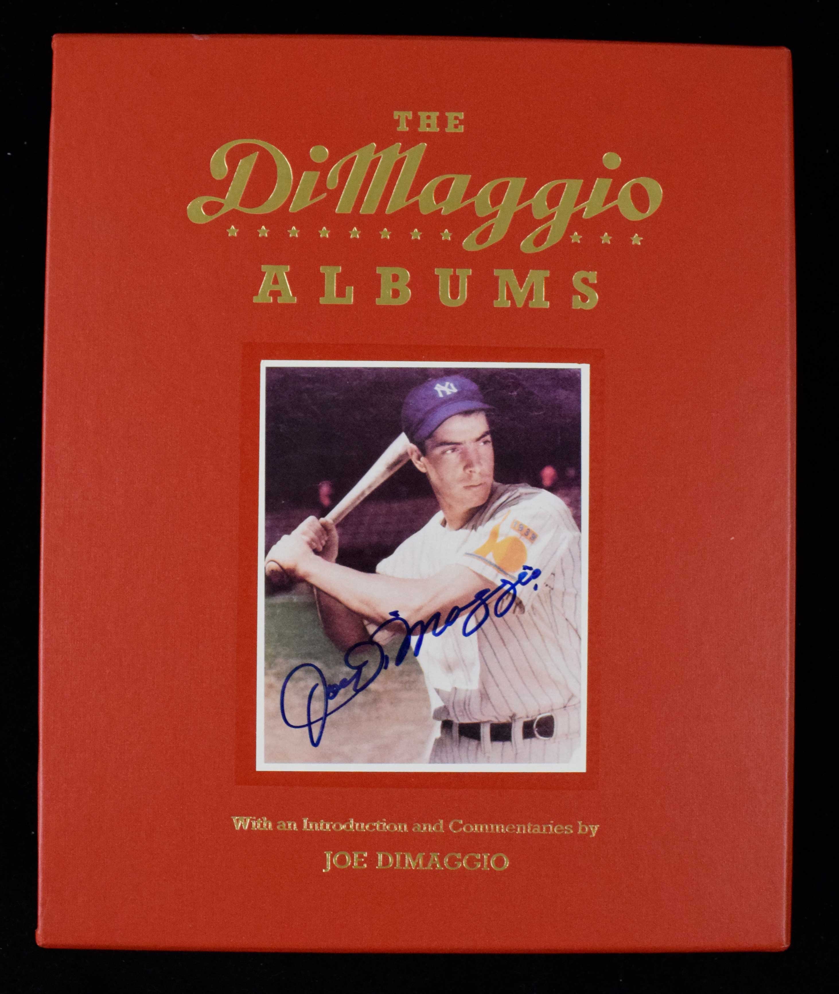 Description:Joe DiMaggio signed "The DiMaggio Albums" (NM). Includes both volumes, with DiMaggio signing his photo on the display case in blue marker. Signature rates 8/9 out of 10: NM