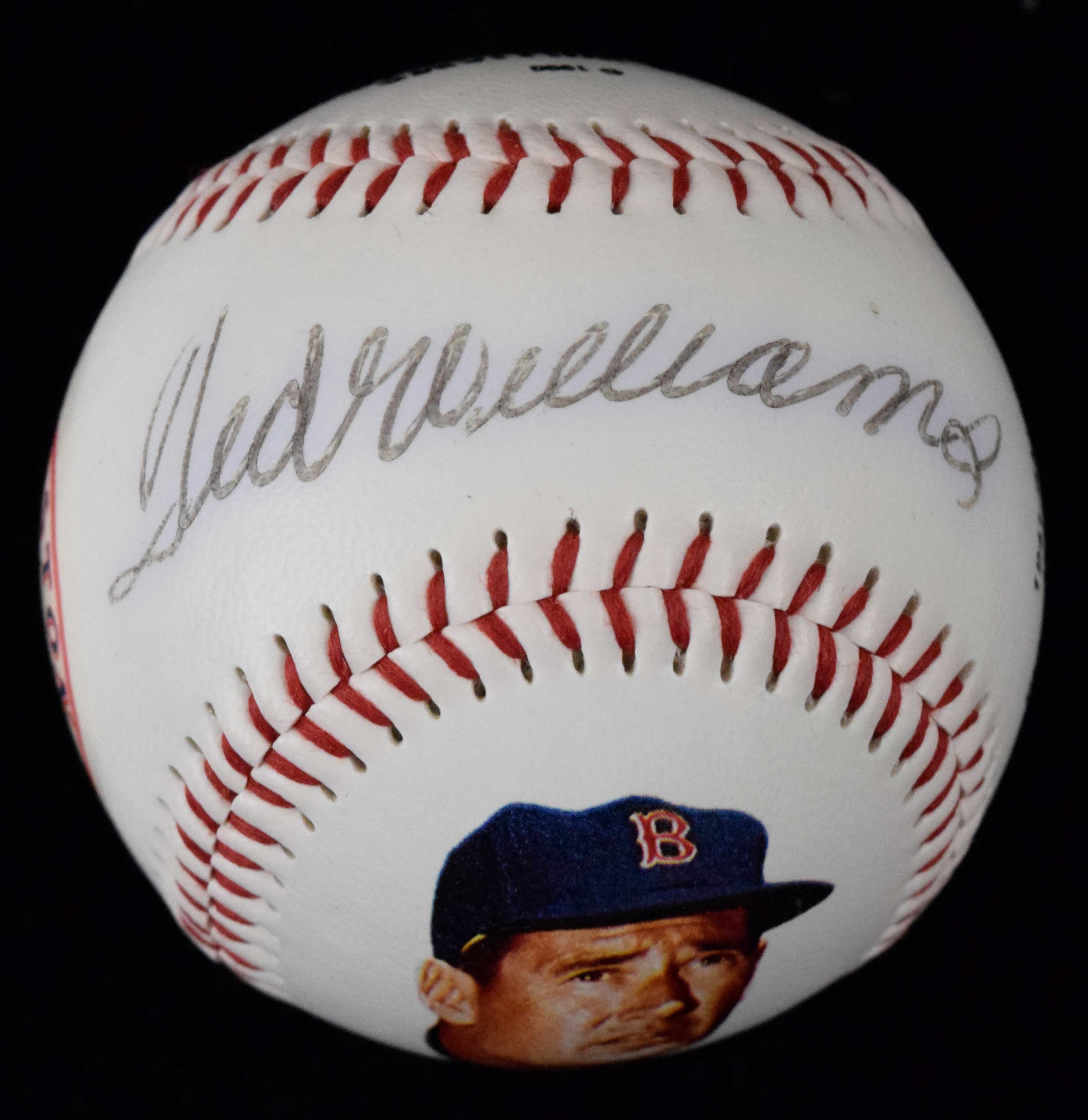 Description:Ted Williams signed limited edition 1990 "Fotoball" baseball (NM). Williams signed the sweet spot in black ink. Signature rates 7 out of 10. The ball is #ed 84/1000: NM