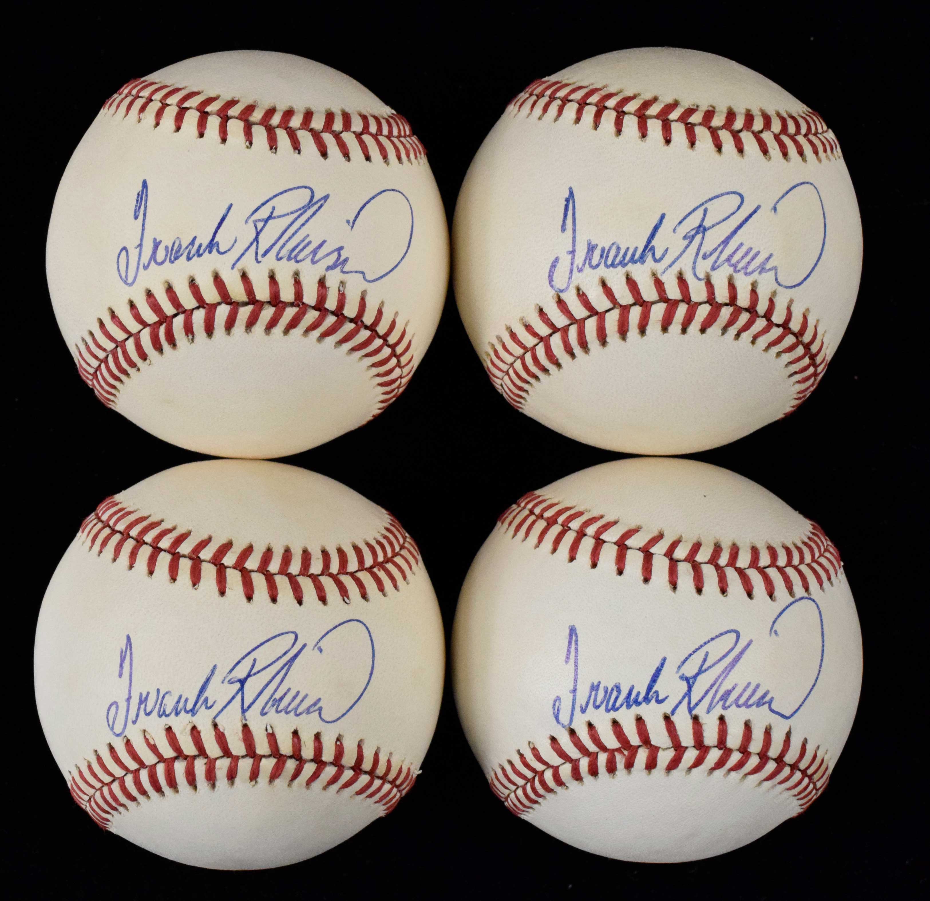 Description:Lot of (5) Frank Robinson signed B.Brown AL baseballs (EX-EX/MT). Robinson signed the sweet spot of each ball in blue ink. Signatures rate 8 to 9/10 out of 10. All have light to moderate toning: EX-EX/MT