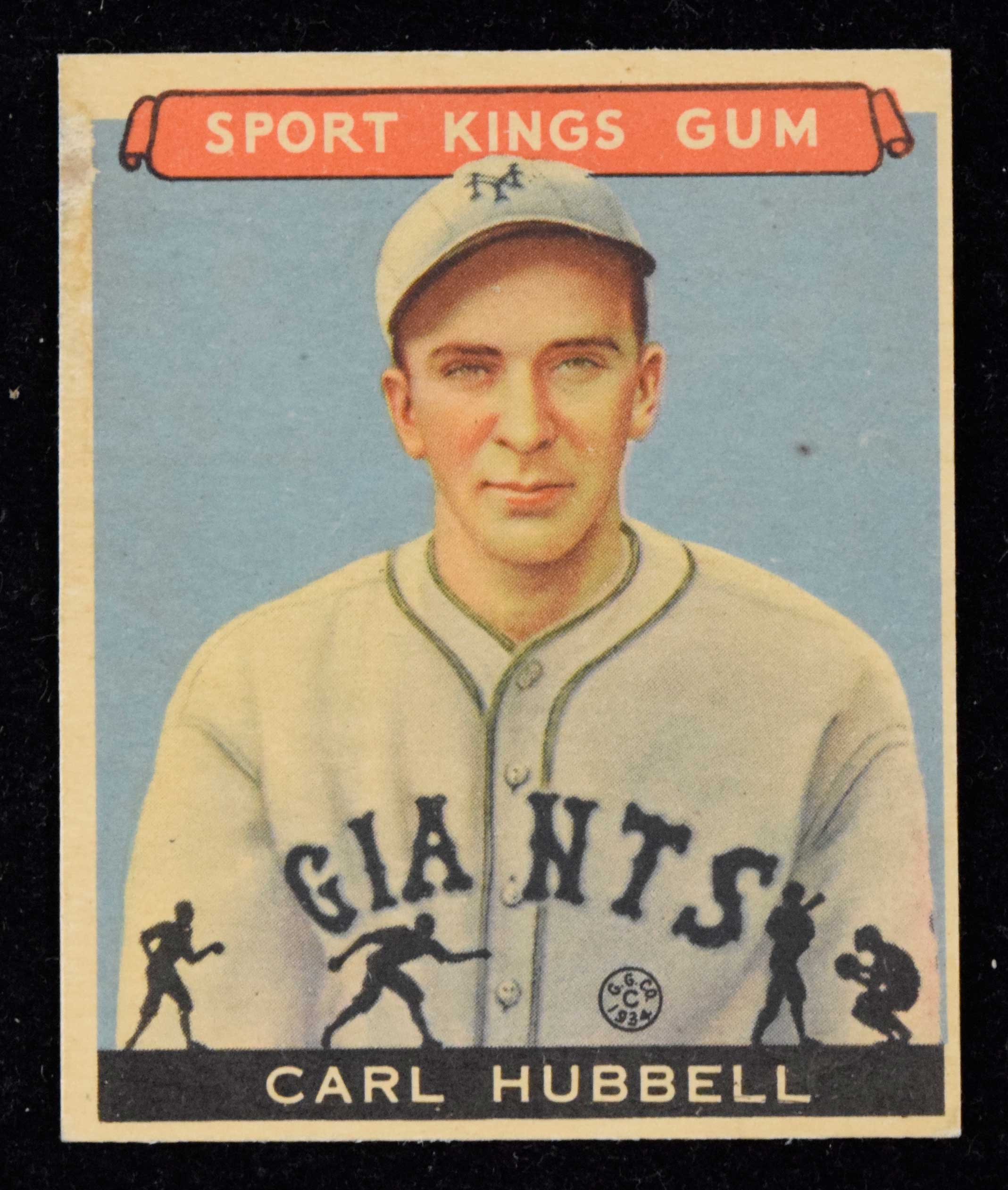 Description:1933 Goudey Sport Kings #42 Carl Hubbell (FR). Classic prewar card of the Hall of Famer has a sharp appearance but is marred by a small area of paper loss on the upper left border, accounting for the technical downgrade. Back is clean: FR.