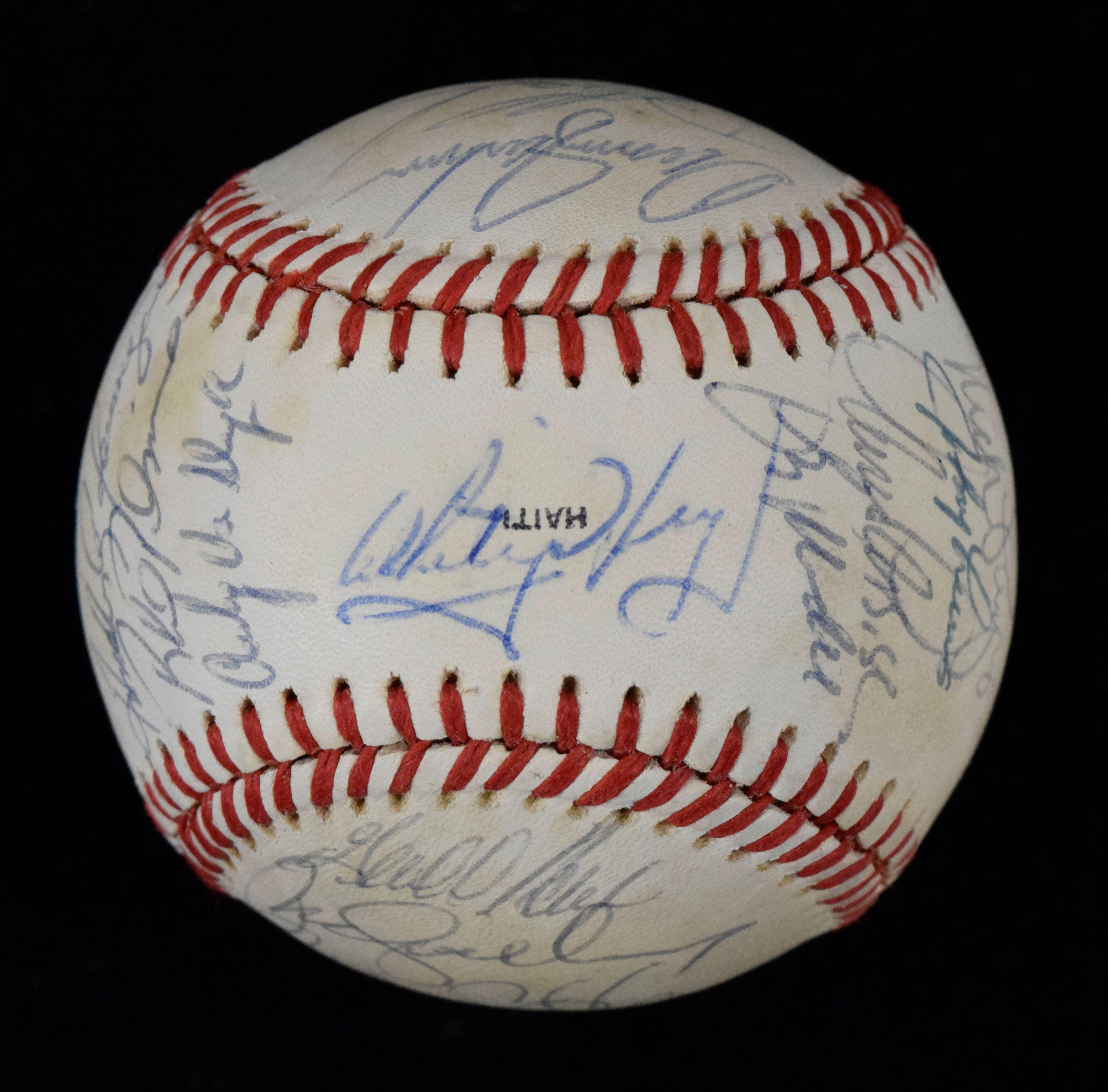 Description:1988 National League All-Star Team signed baseball (VG-EX) Rawlings Official 1988 All-Star Game logo baseball has been signed by (28) incl. Whitey Herzog, Andre Dawson, Ryne Sandberg, Gary Carter, Rafeal Palmiero, and others. Ink signatures rate 5/6 to 7 out of 10. Light/mild toning: VG-EX
