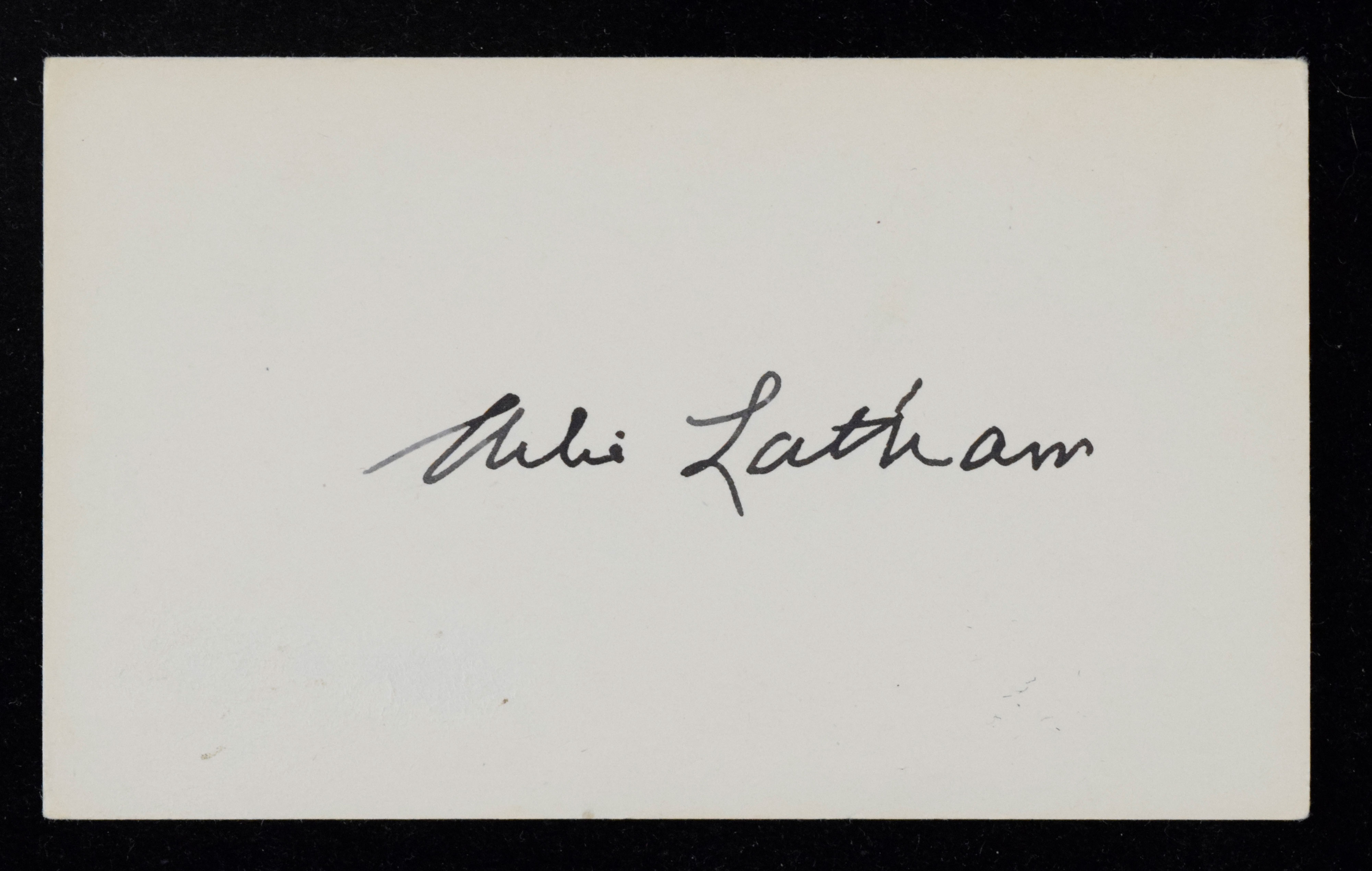 Description:Arlie Latham autographed index card (EX-NM) Bold fountain pen signature rating 9 out of 10 appears on index card showing light toning and a touch of wear: EX-NM