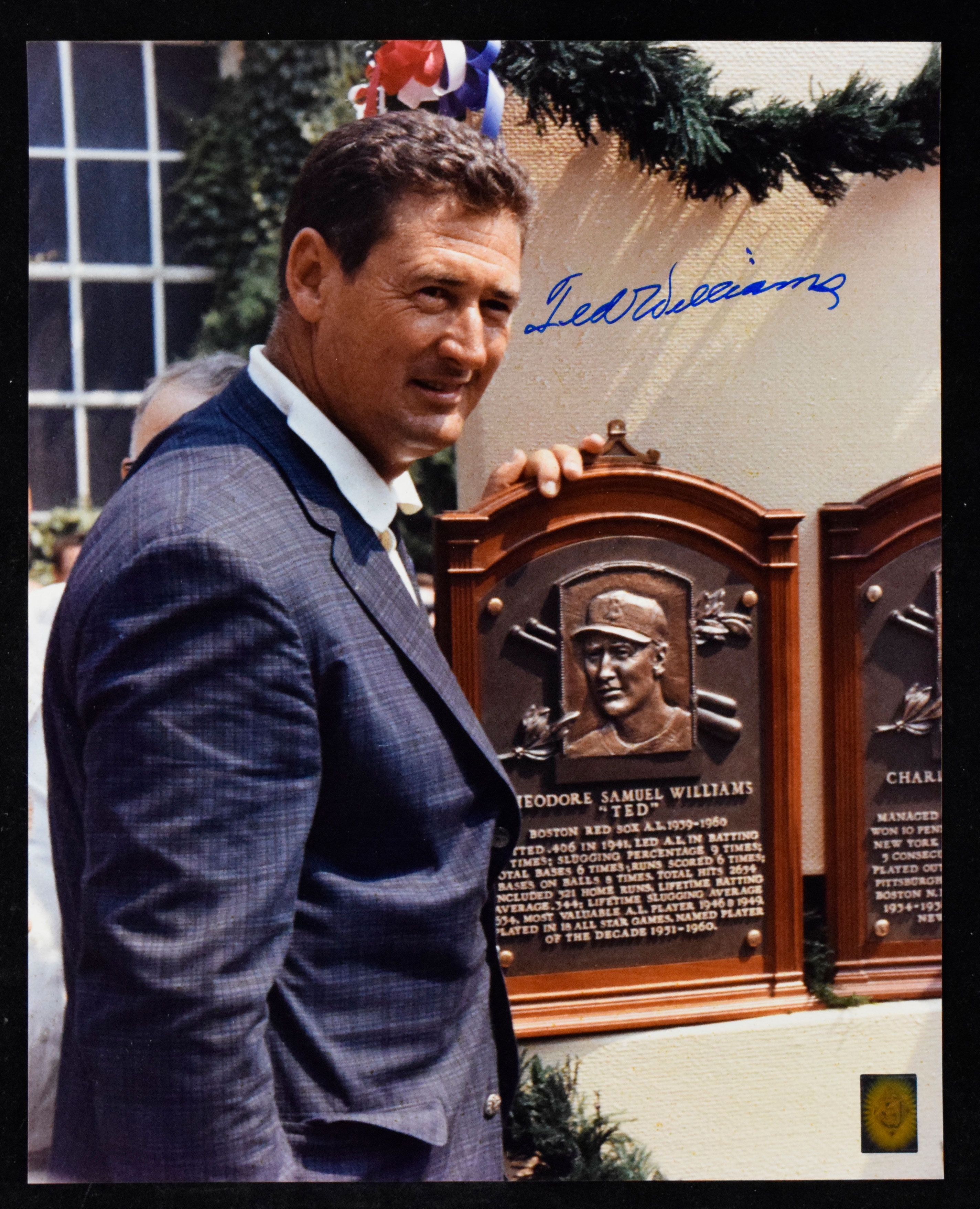 Description:Ted Williams autographed 16"x20" photograph (Green Diamond) (Sig. NM) Color photo has been signed in marker rating 9/10 out of 10 and there is a Green Diamond authentication hologram affixed. A few minute flaws to the photo paper, visible when viewed from the proper angle, are noted for accuracy: Sig. NM