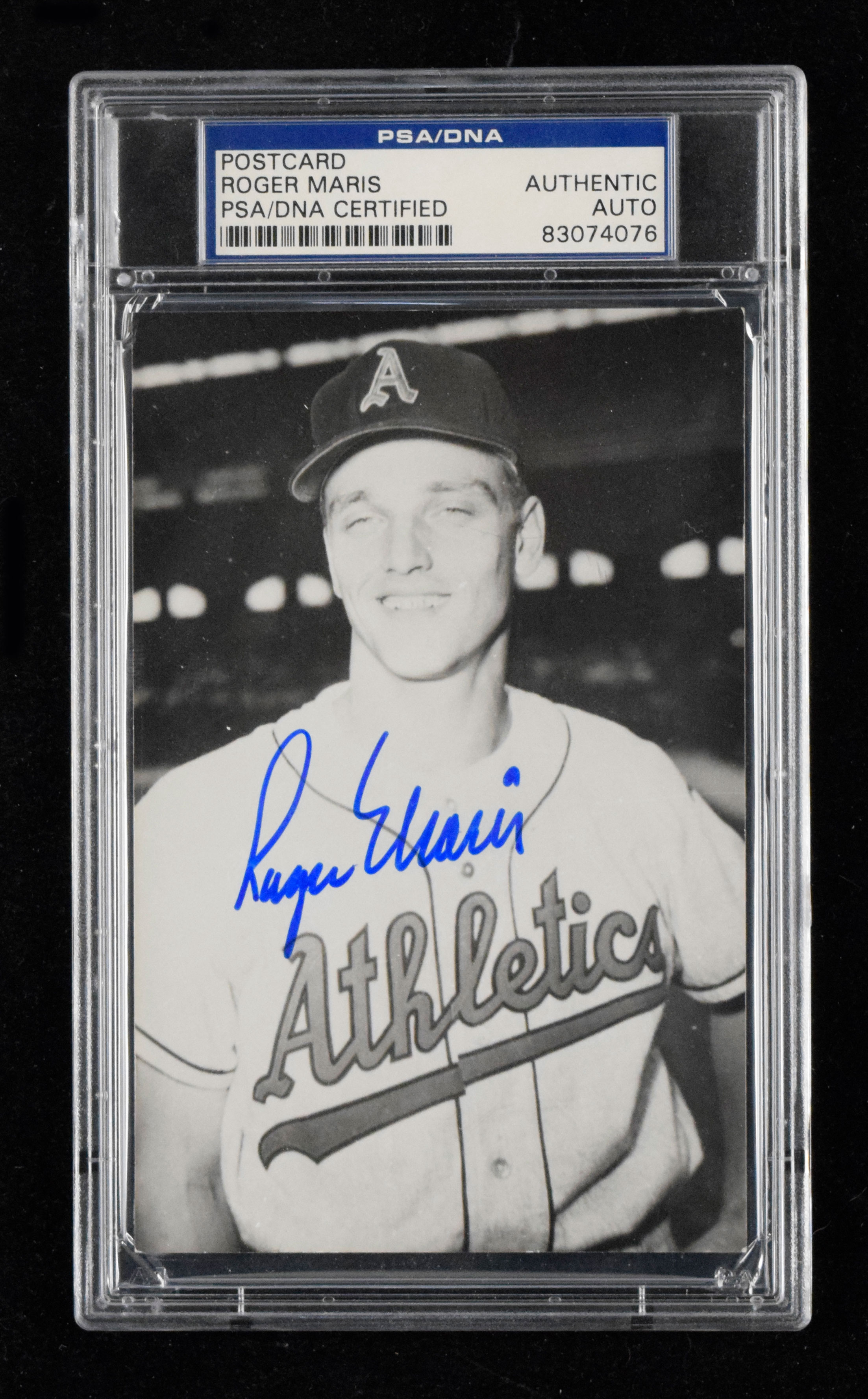 Description:Roger Maris autographed real photo postcard (PSA/DNA) (EX/MT-NM) Real photo postcard has been signed in marker rating 9-9/10 out of 10. Authenticated and encapsulated by PSA: EX/MT-NM