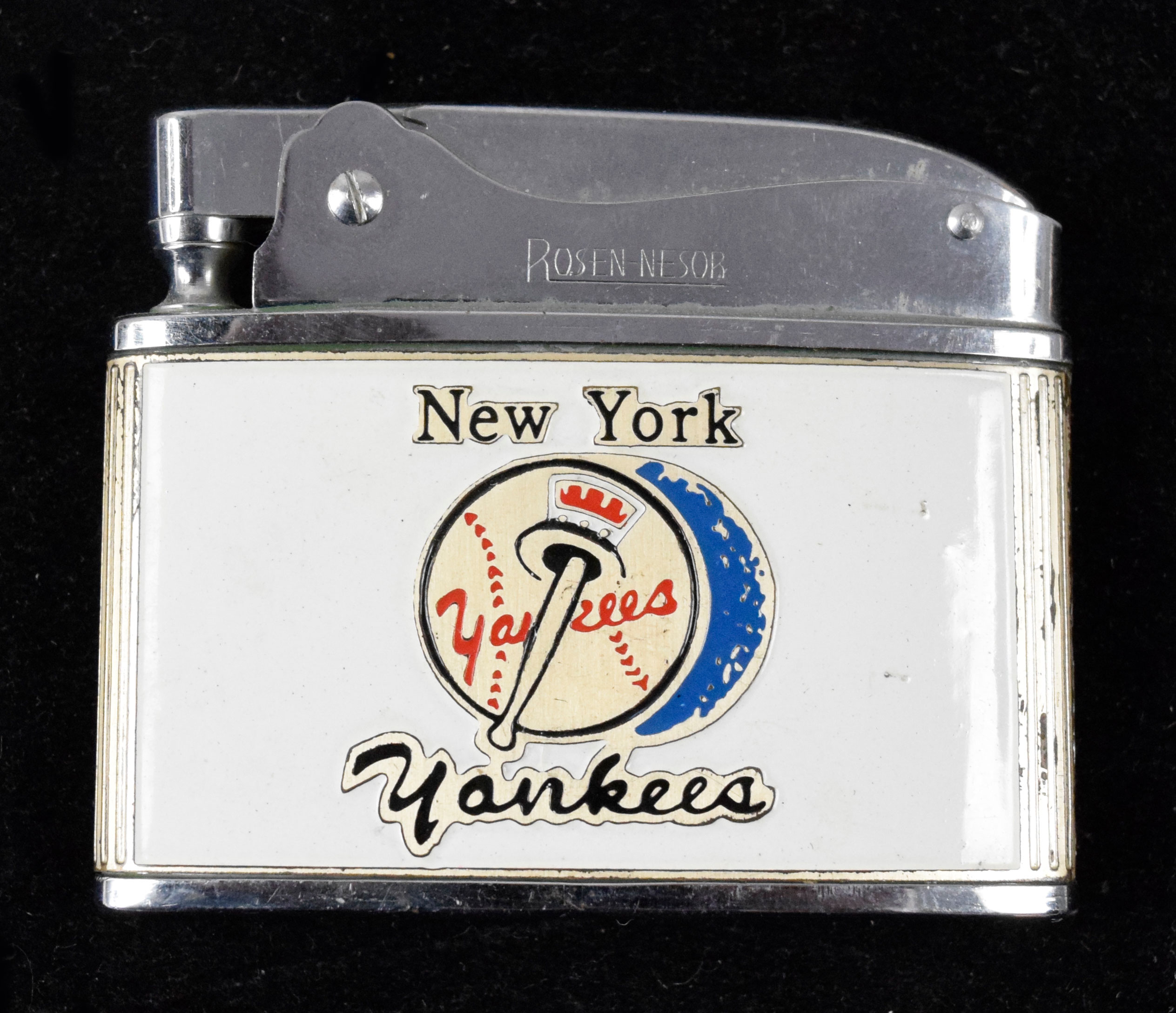 Description:c.1960s Roger Maris New York Yankees logo souvenir lighter (EX/MT) High grade vintage lighter by Rosen-Nesor has an enameled Yankees logo on one side and "Best Wishes Roger Maris" on the other. In very sharp condition with just a touch of light age/wear. A small screw in cap for the fluid compartment is missing from the bottom: EX/MT
