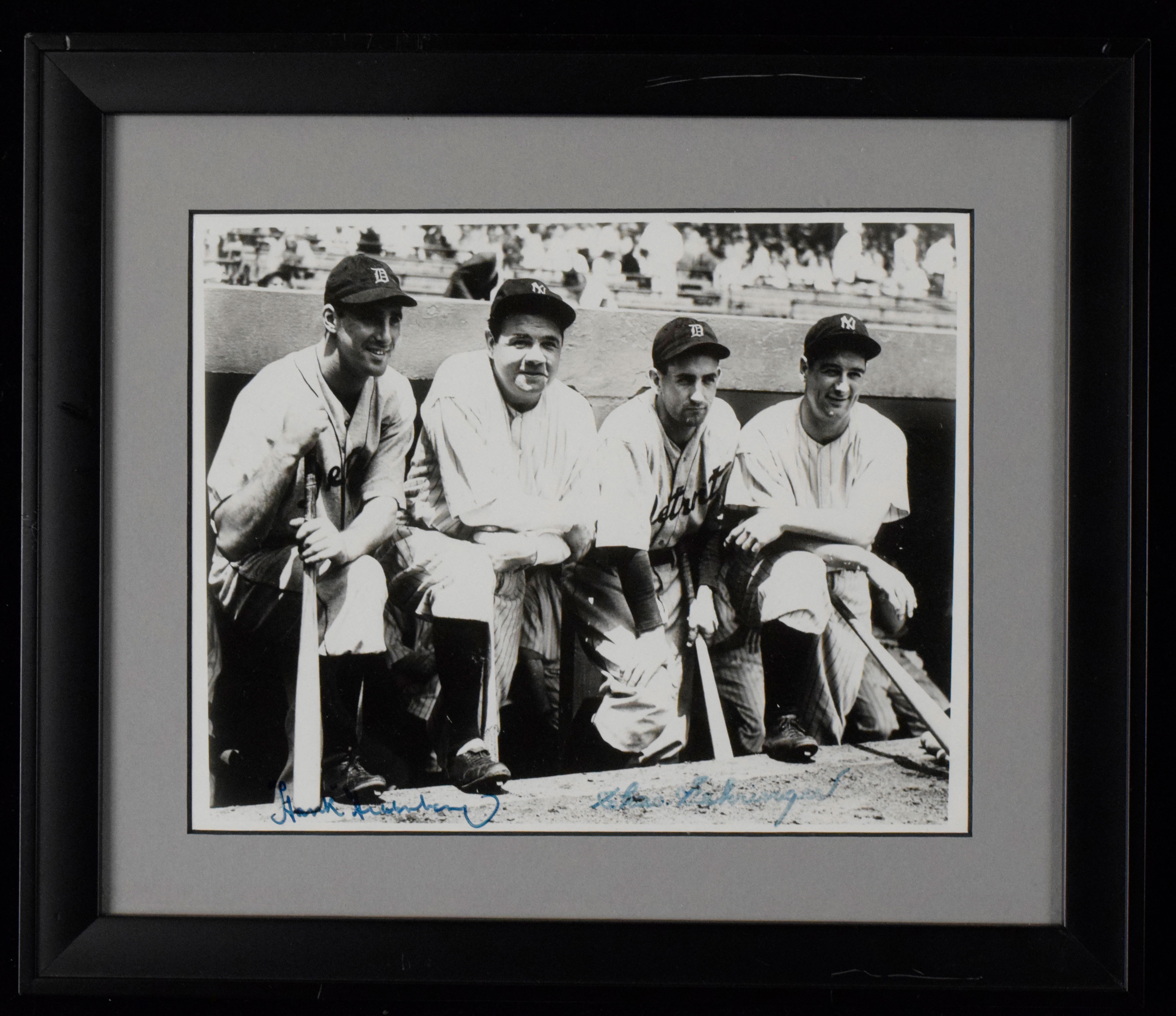 Description:Hank Greenberg and Charles Gehringer autographed 8"x10" photo (EX/MT) Black and white photo (framed to 12"x14") has been signed by each in marker rating 8 to 8/9 out of 10. Touch of wear to frame: EX/MT