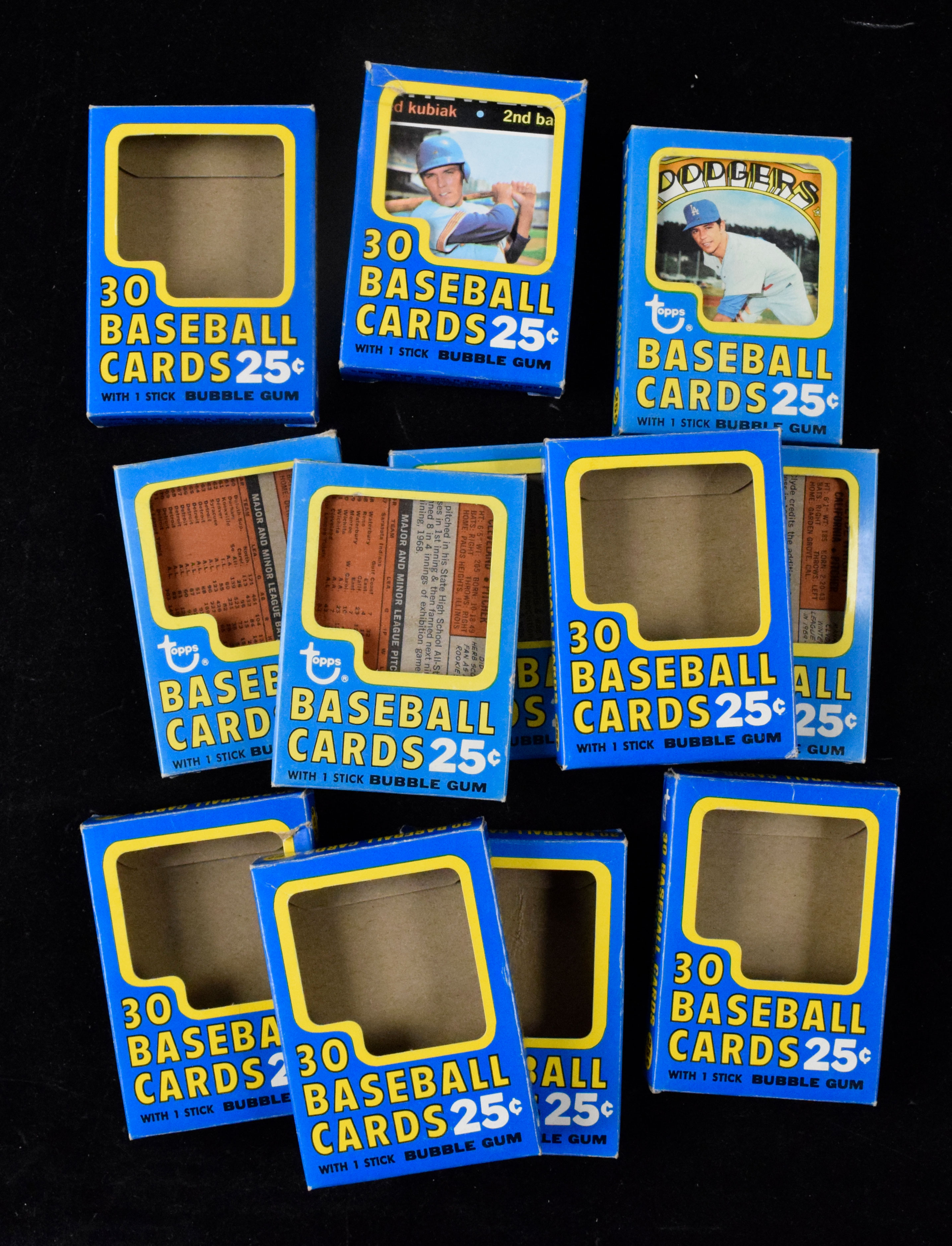 Description:Lot of (12) 1971 and 1972 Topps Baseball cello pack outer boxes (Avg EX) Total of (12) outer boxes which were issued with 1971 and 1972 Topps Baseball cards inside (we are only selling the outer boxes, they DO NOT contain packs however there are a handful of cards from each year included). We believe that there are (7) from 1971 (slightly larger) with the balance from 1972 but cannot state this with certainty. Average EX condition with mild handling and storage wear with a few lesser: Avg. EX