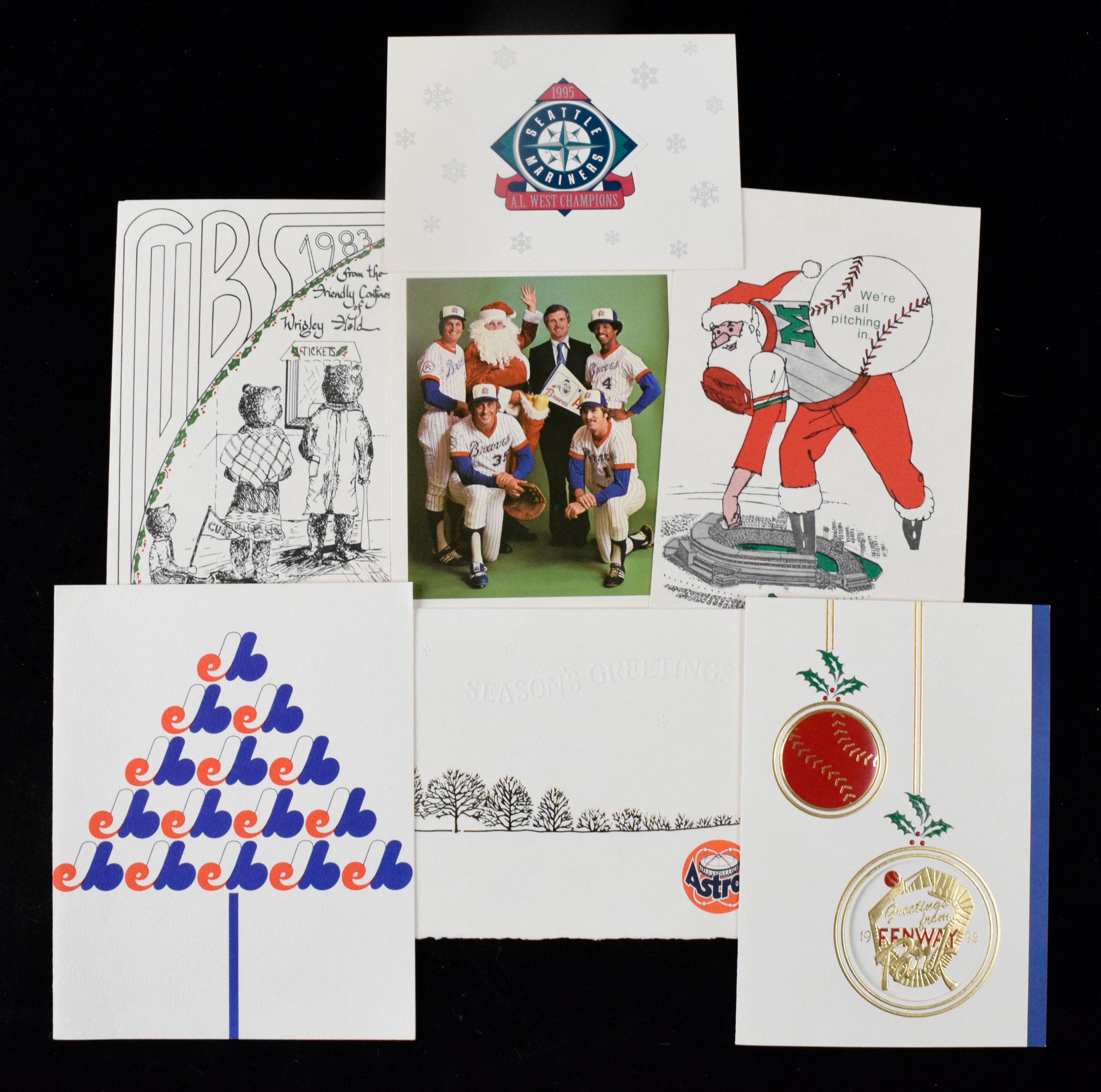 Description:Lot of (103) Major League Baseball team sent Christmas and/or Holiday Greeting cards (EX-NM) Nice lot with most pieces likely dating from the 1980s and 90s however there are some more recent . Many are signed by team related personelle. Includes (19) Red Sox, (9) Brewers, (10) Expos, (18) Mariners, (14) Cubs, (19) Braves, and (14) Astros: EX-NM