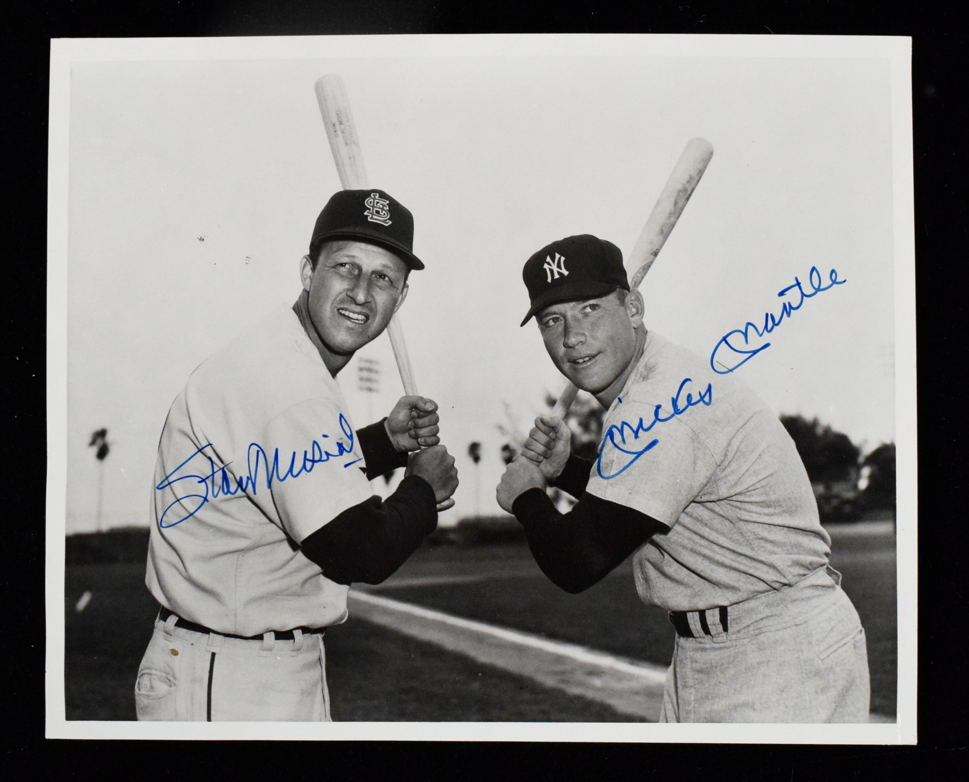 Mickey Mantle and Stan Musial signed 8"x10" photograph (NM) Black and white photo has been signed in marker rating 8 out of 10: NM