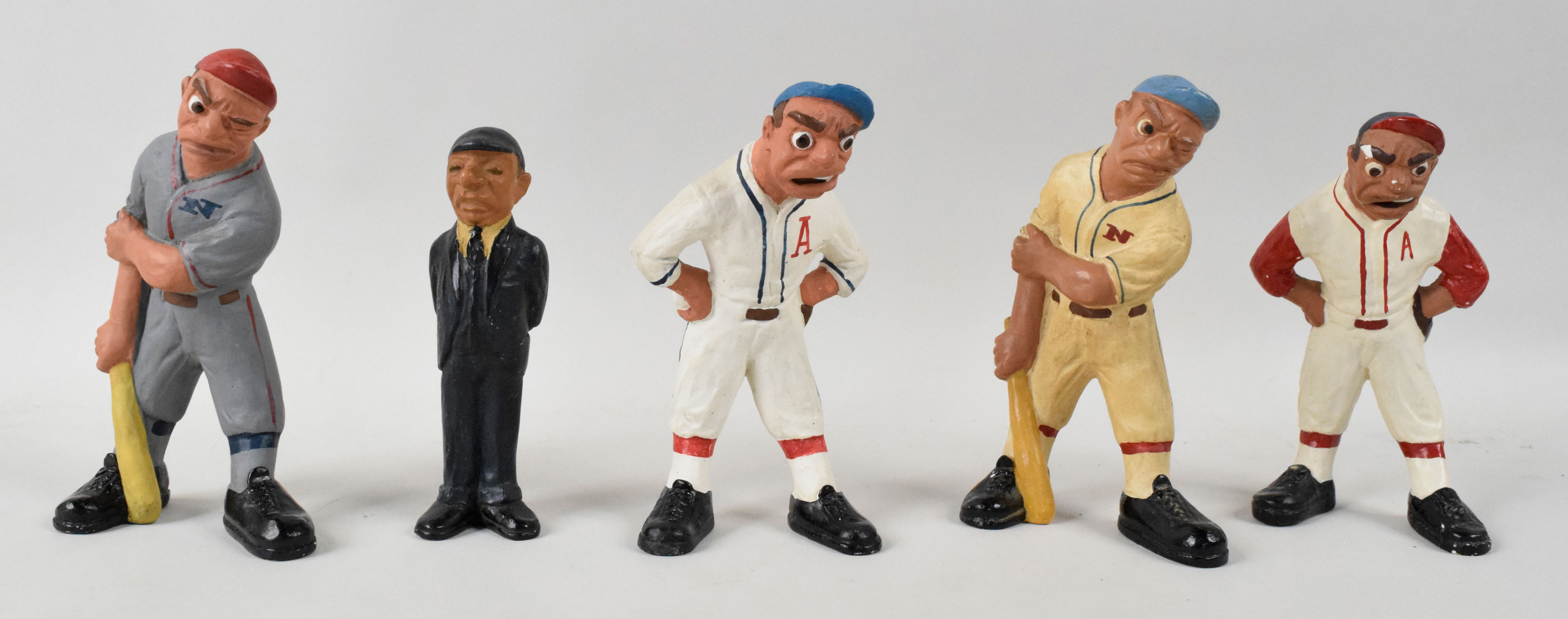 Description:Lot of (2) 1941 Rittgers baseball statues sets (VG/EX-EX/MT). Includes (2) batters, (2) pitchers, and (2) umpires. Most appear to average EX overall with normal age and handling wear to the surface. Range: VG/EX-EX/MT