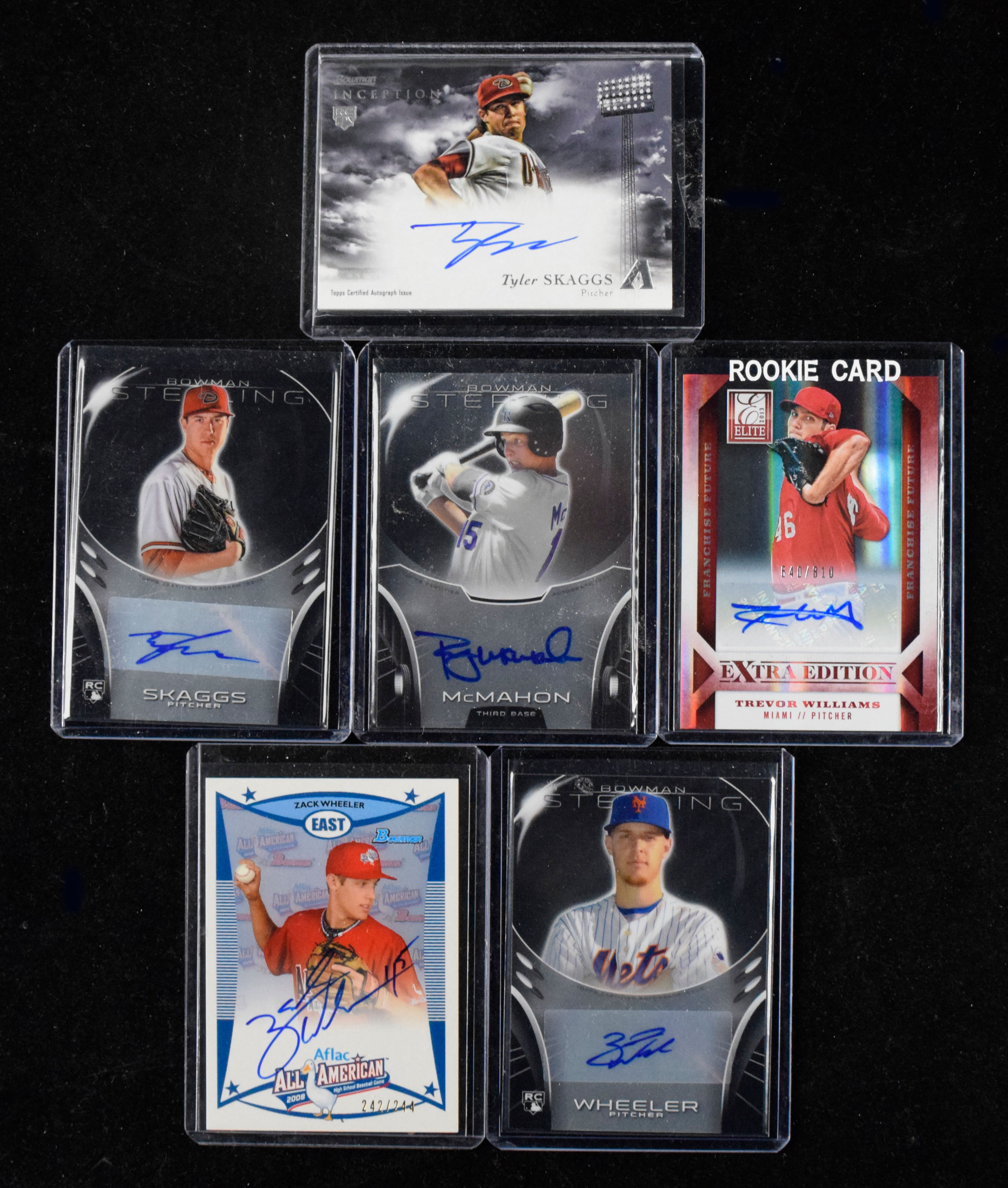 Description:Lot of (87) signed baseball rookie and insert cards (NM-NM/MT overall). Years range from 2008-2014. Includes (2) Tyler Skaggs, (2) Zack Wheeler, J.P. Crawford, Michael Lorenzen, Ryan McMahon, Austin Meadows, Julio Urias, Devin Williams, Alex Wood, Trevor Williams, and many others. Signatures rate 7 to 10 (avg 9) out of 10: NM-NM/MT overall