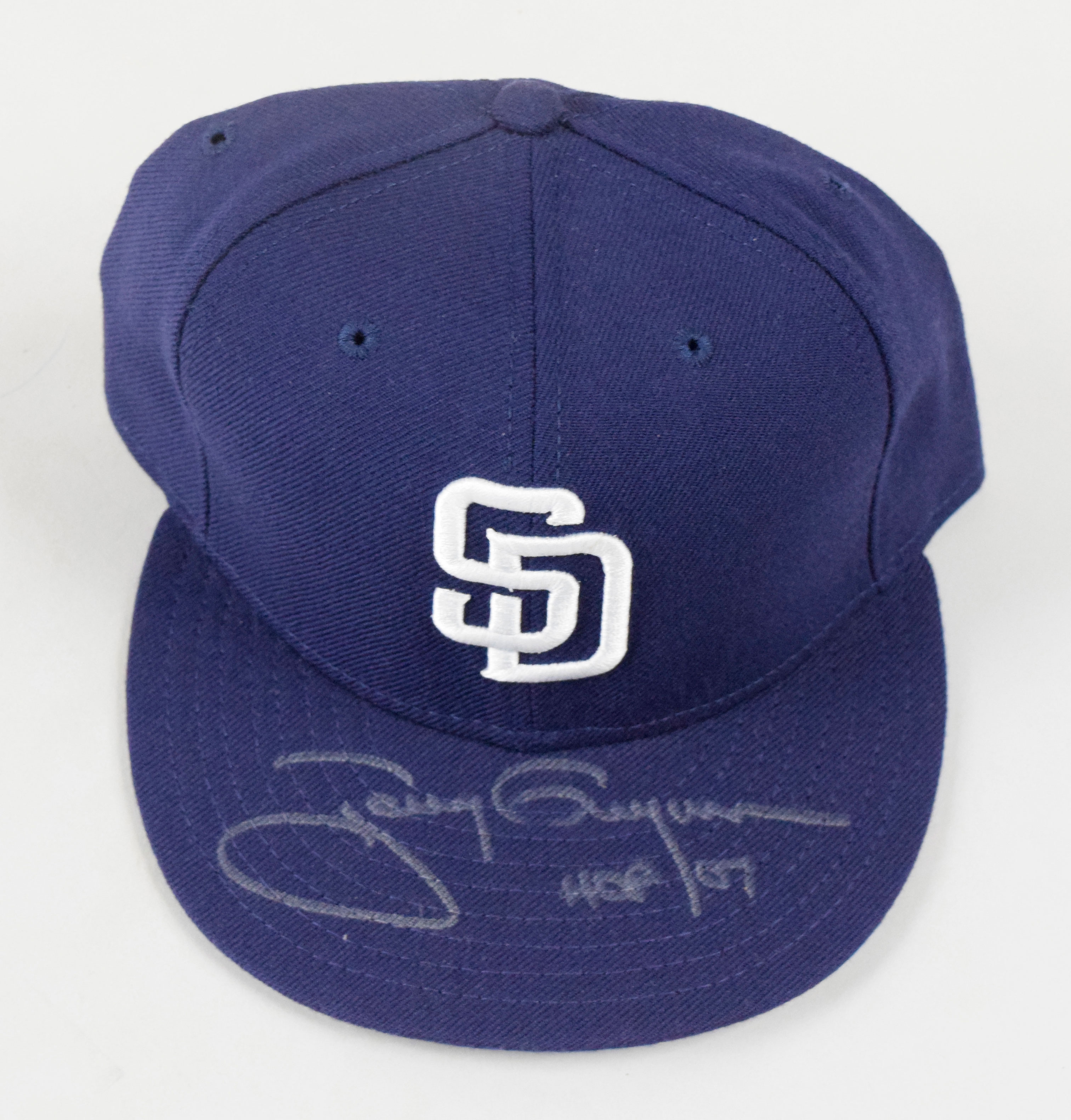 Description:Tony Gwynn signed and inscribed San Diego Padres hat (NM). New Era size 7-3/8 Padres hat signed by Gwynn in silver marker with "HOF 07" inscription. Signature rates 8 out of 10: NM