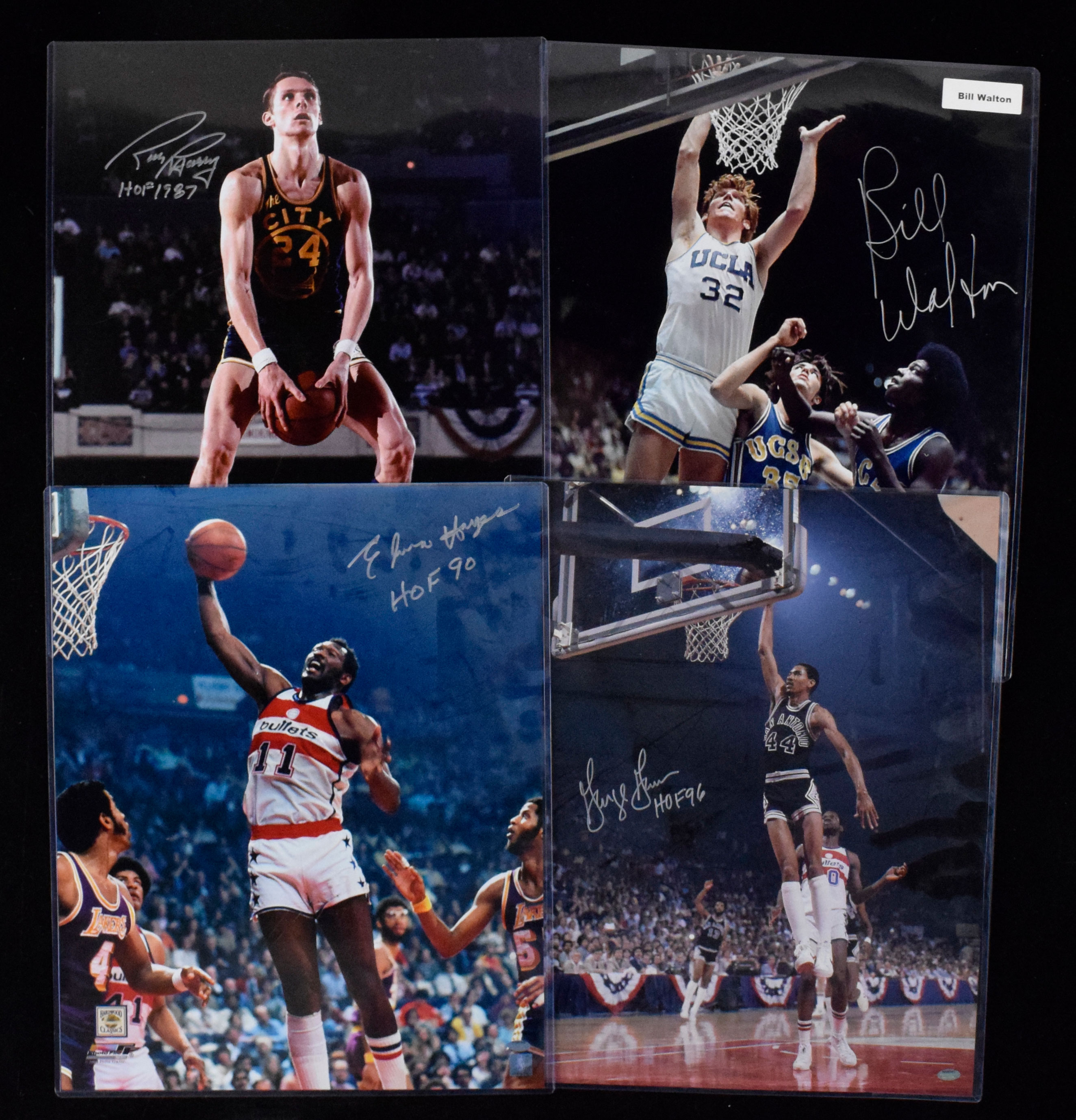 Description:Lot of (5) Basketball HOFers signed 16"x20" photographs (NM-NM/MT). Includes Bill Walton (PSA/DNA), Rick Barry with "HOF 1987" inscription (Schwartz Sports), George Gervin with "HOF 96" inscription (Schwartz Sports), Elvin Hayes with "HOF 90" inscription (Schwartz Sports), and Robert Parish with "HOF 03" inscription (Schwartz Sports). Signatures rate 8 to 10 out of 10: NM-NM/MT
