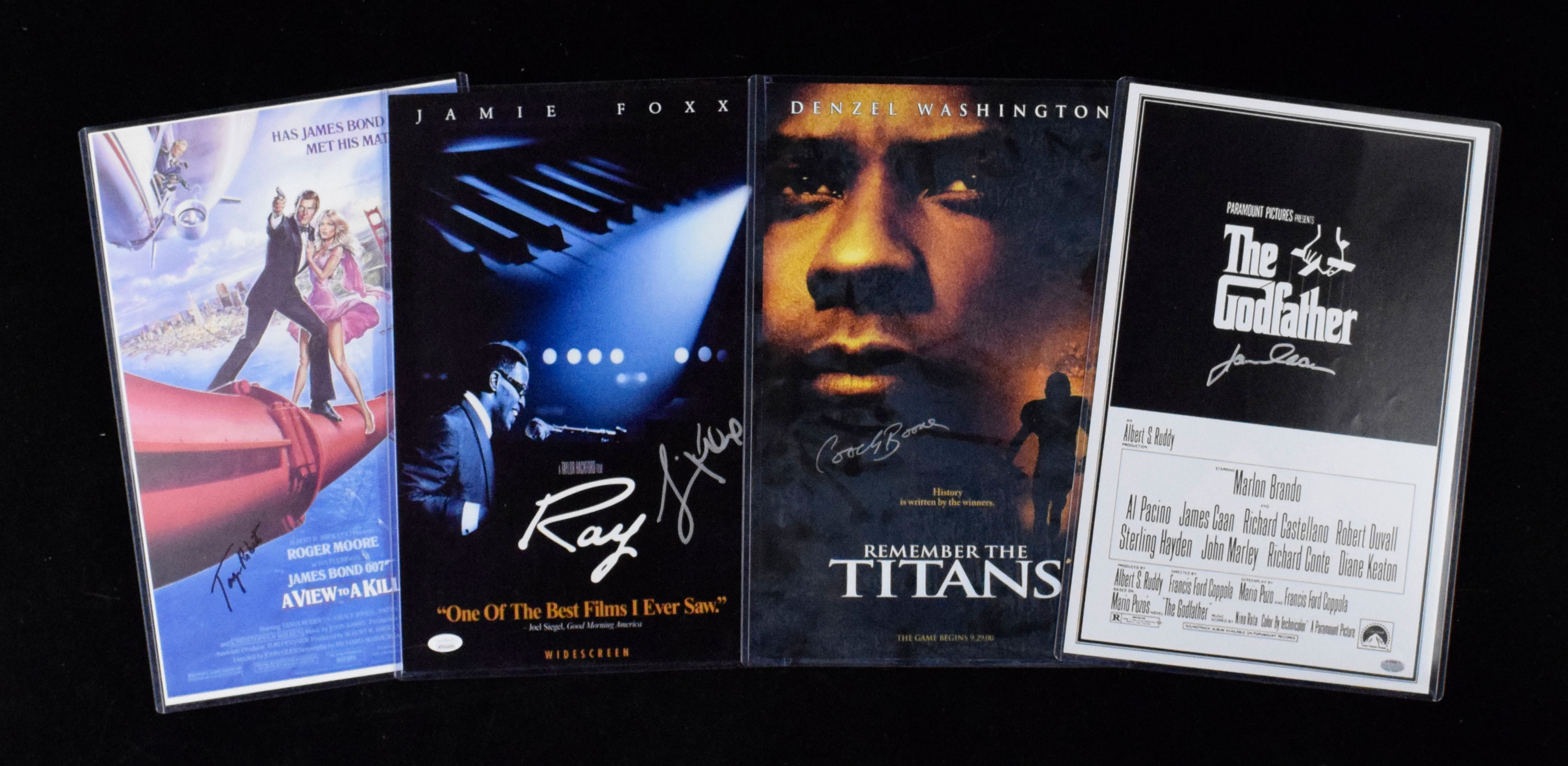 Description:Lot of (7) signed 11"x17" movie photographs (NM-NM/MT). Includes "Rember The Titans" signed by Coach Herman Boone (JSA), "The Godfather" signed by James Caan (Schwartz Sports), "A View To A Kill" signed by Tanya Roberts (Schwartz Sports), "Ray" signed by Jamie Foxx (JSA), "TRON" signed by Cindy Morgan with "Yori" inscription (Schwartz Sports), "Back To The Future" signed by Claudia Wells with "Jennifer Parker" inscription (Schwartz Sports), and "Kramer vs. Kramer" signed by Justin Henry (Schwartz Sports). Signatures rate 7 (Henry) to 10 (avg 8/9) out of 10: NM-NM/MT