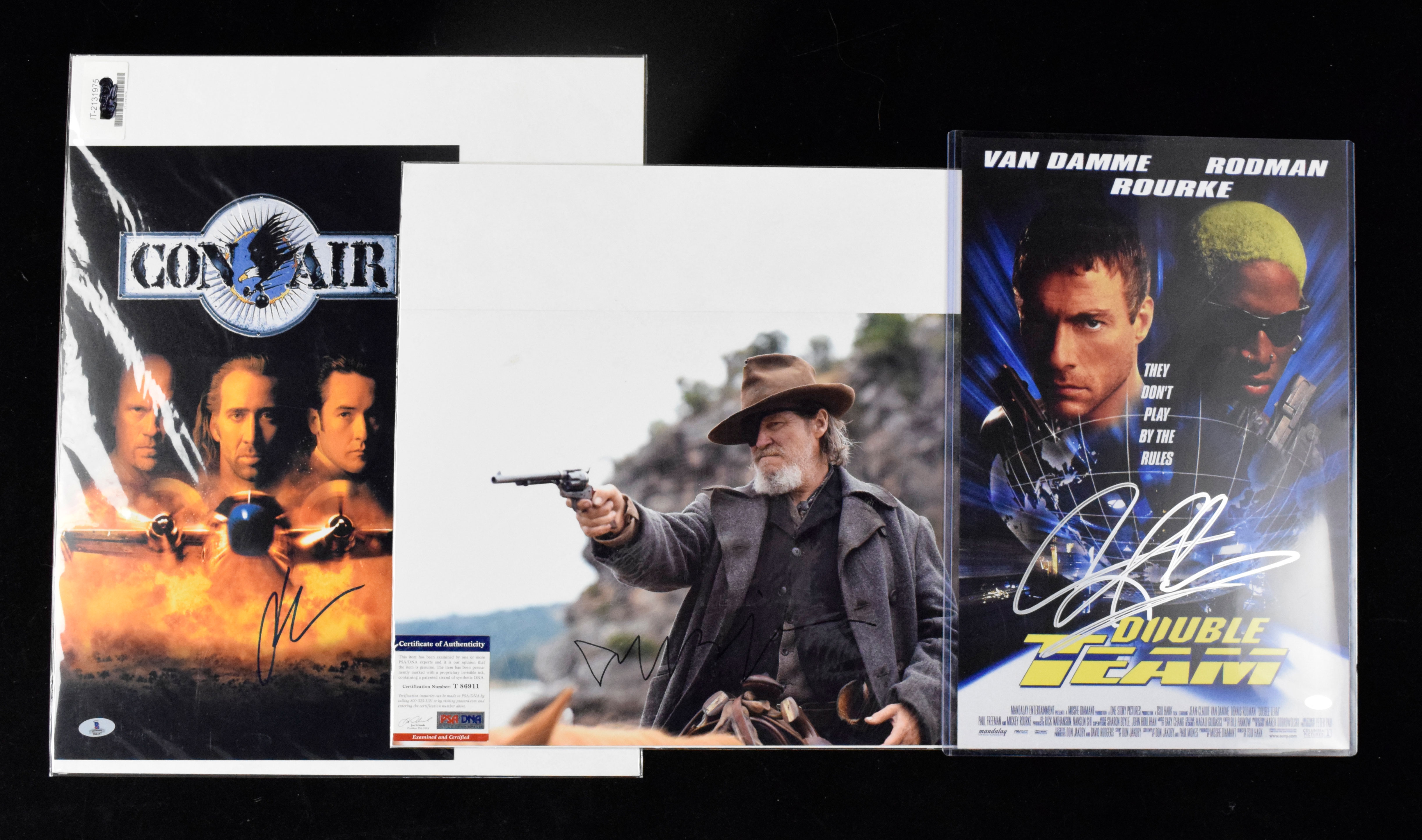 Description:Lot of (7) signed 11"x17" movie photographs (NM-NM/MT). Includes "Double Team" signed by Dennis Rodman (Schwartz Sports), "True Grit" signed by Jeff Bridges (PSA/DNA), "Back To The Future" signed by Claudia Wells with "Jennifer Parker" inscription (Schwartz Sports), "Con Air" signed by John Cusack (Beckett Witnessed), "Oklahoma! 50th Anniversary" signed by Shirley Jones (Schwartz Sports), "A League Of Their Own" signed by Lori Petty (Schwartz Sports), and "40 Days And 40 Nights" signed by Shannyn Sossamon (Schwartz Sports). Signatures rate 8 to 10 out of 10: NM-NM/MT