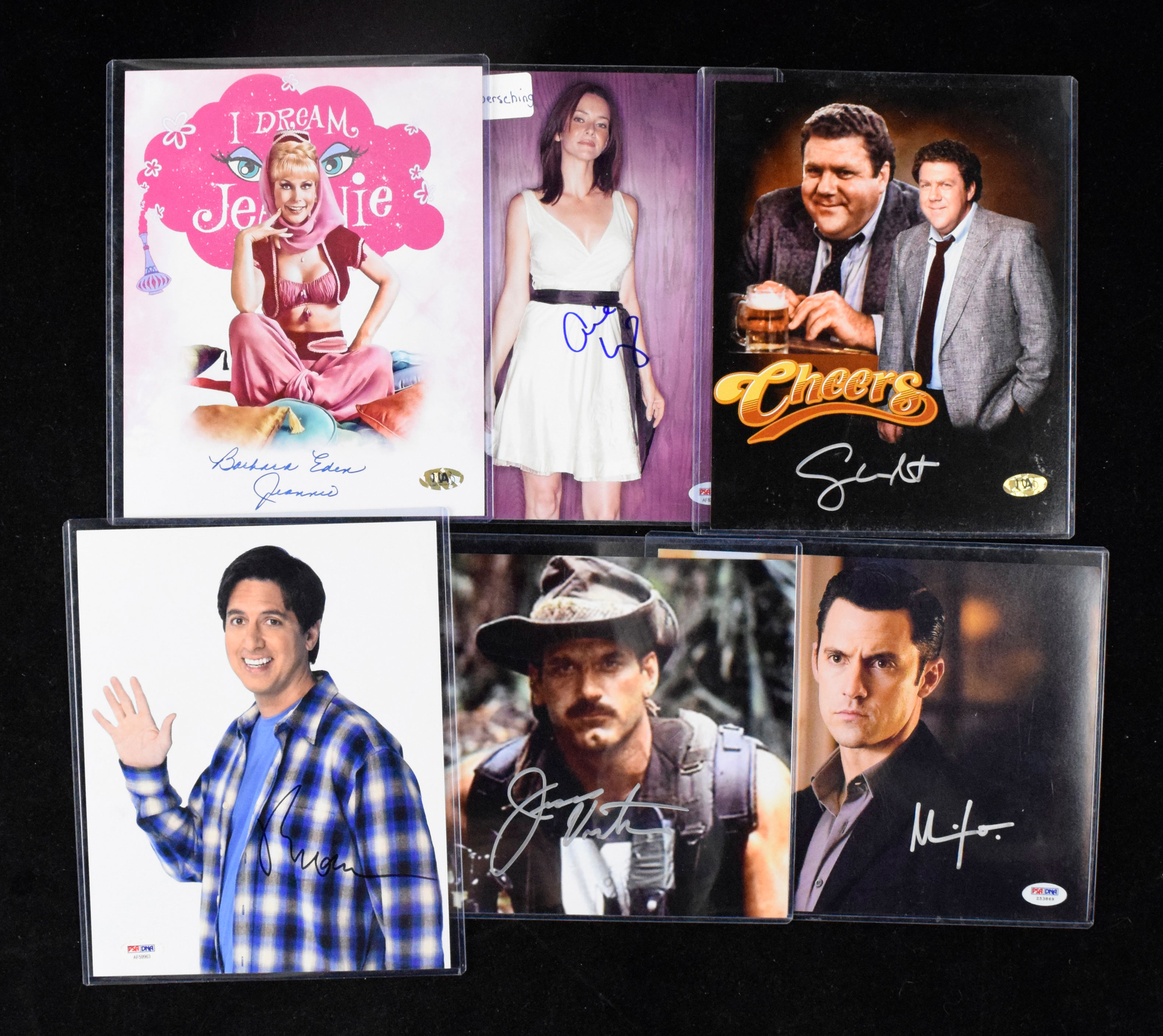 Description:Lot of (23) signed entertainment & non-sports 8"x10" photographs (NM-NM/MT overall). Includes Annie Wersching (PSA/DNA), Barbara Eden with "Jeannie" inscription (MAB), Jesse Ventura (MAB), Lou Ferrigno (personalized), George Wendt (MAB), Ray Romano (PSA/DNA), Milo Ventimiglia (PSA/DNA), Charlie Day (PSA/DNA), Michael Imperioli (MAB), Alia Shawkat, (2) Sam Trammell (one personalized), J.J. Abrams (PSA/DNA), Dave Foley (PSA/DNA), Mae Whitman, Yalitza Aparicio, Vincent Pastore (MAB), James Hong (personalized), Jason Schwartzman (PSA/DNA), Federico Castelluccio (MAB), Dominic Monaghan, Jackie Martling (personalized), and Jesse Tyler Ferguson (PSA/DNA). Signatures rate 7 to 10 (avg 8/9) out of 10: NM-NM/MT overall