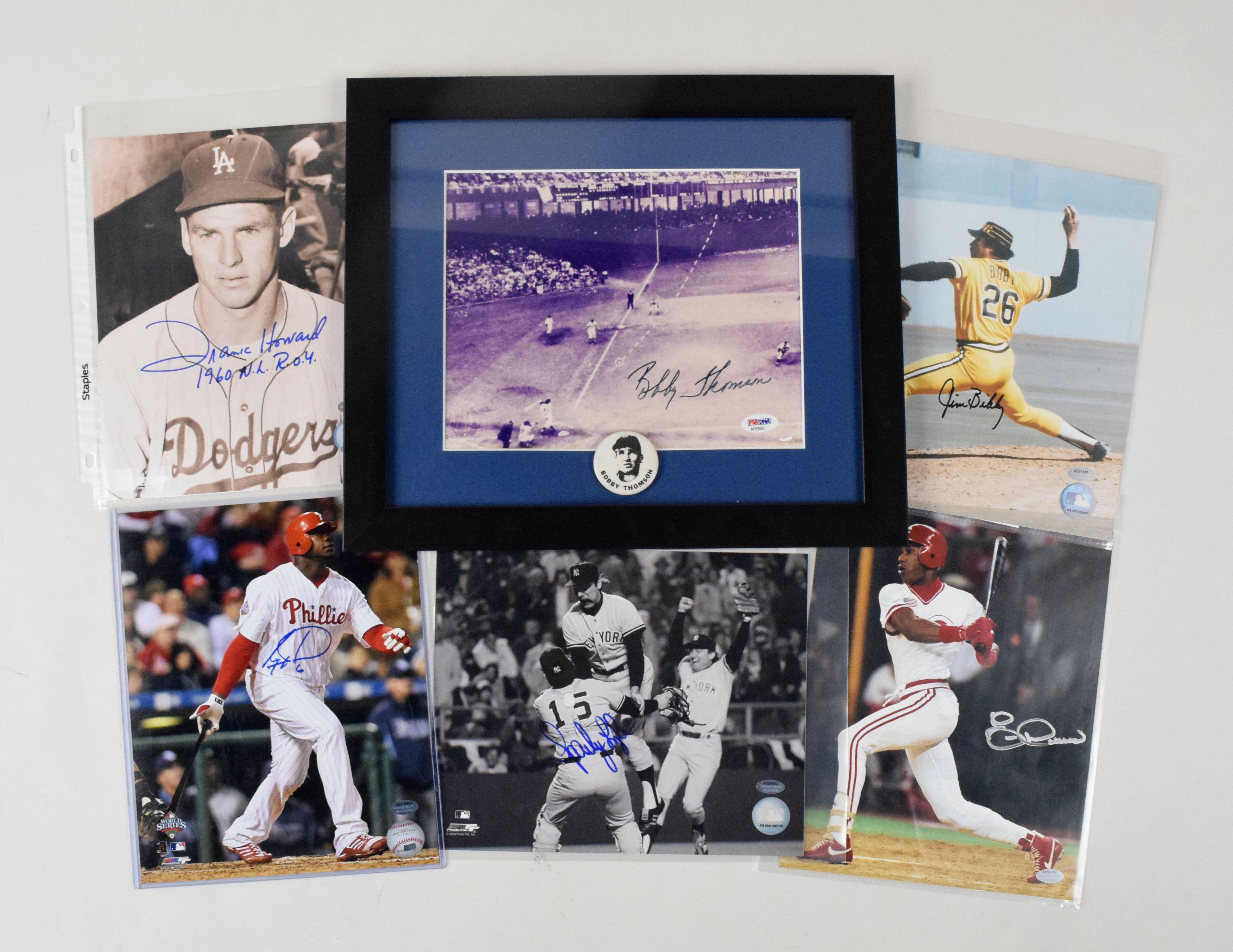 Description:Lot of (25) signed 8"x10" baseball photographs (NM-NM/MT overall). Includes Frank Howard with "1960 NL ROY" inscription (Schwartz Sports), Bobby Thomson (framed), Jim Bibby (Schwartz Sports), Graig Nettles (Schwartz Sports), Ryan Howard (Schwartz Sports), Dave Kingman (Schwartz Sports), Sparky Lyle (Schwartz Sports), Denny McLain with "68 AL MVP" inscription (Schwartz Sports), Eric Davis (Schwartz Sports), Cecil Fielder (Schwartz Sports), Jon Garland (Schwartz Sports), Michael Wacha (Schwartz Sports), Willie Harris with "WS GW HR" inscription (Schwartz Sports), Kelvin Herrera (Schwartz Sports), Rich Hill (Schwartz Sports), Chris Bosio with "16 WS Champ!" inscription (Schwartz Sports), Chris Taylor (Schwartz Sports), Logan Morrison (MLB Authenticated), Brandon McCarthy (Mounted Memories and MLB Authenticated), Geoff Blum (Schwartz Sports), Cliff Politte (Schwartz Sports), Addison Russell (Schwartz Sports), Matt Szczur (Schwartz Sports), Brian Anderson (Fanatics and MLB Authenticated), and Mike Montgomery (Schwartz Sports). Signatures rate 8 to 10 out of 10: NM-NM/MT overall