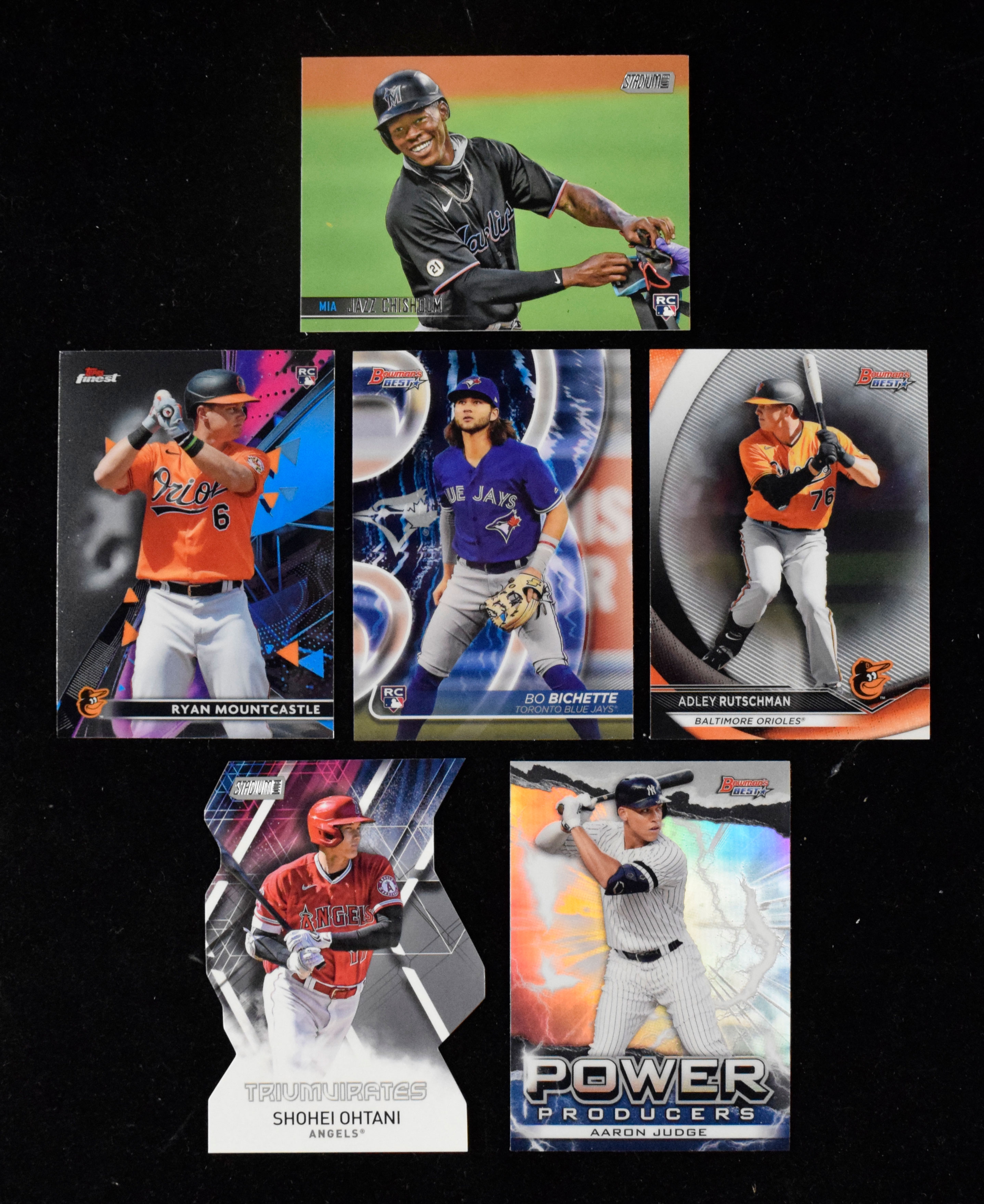 Lot of 2020 and 2021 baseball card sets and partial sets (NM-NM/MT overall). Includes 2020 Bowman's Best set, 2020 Bowman's Best "Top Prospects" set, 2020 Bowman's Best "Refractors" set, 2020 Bowman's Best "Top Prospects Refractors" set, 2020 Bowman's Best "Franchise 2020 Die Cuts" set, 2020 Bowman's Best "Franchise Favorites" set, 2020 Bowman's Best "Power Producers" set, 2020 Bowman's Best "Decade's Best" set, (29) 2020 Bowman's Best "Franchise 2020 Die Cuts Inverse Color" (only missing Hayes), (108) 2021 Topps Finest, 2021 Topps Finest "Masters" set, 2021 Topps Finest "Legacies" set, 2021 Topps Stadium Club set, 2021 Stadium Club "Greats" set, 2021 Stadium Club "Virtual Reality" set, and some additional insert and parallel cards: NM-NM/MT overall