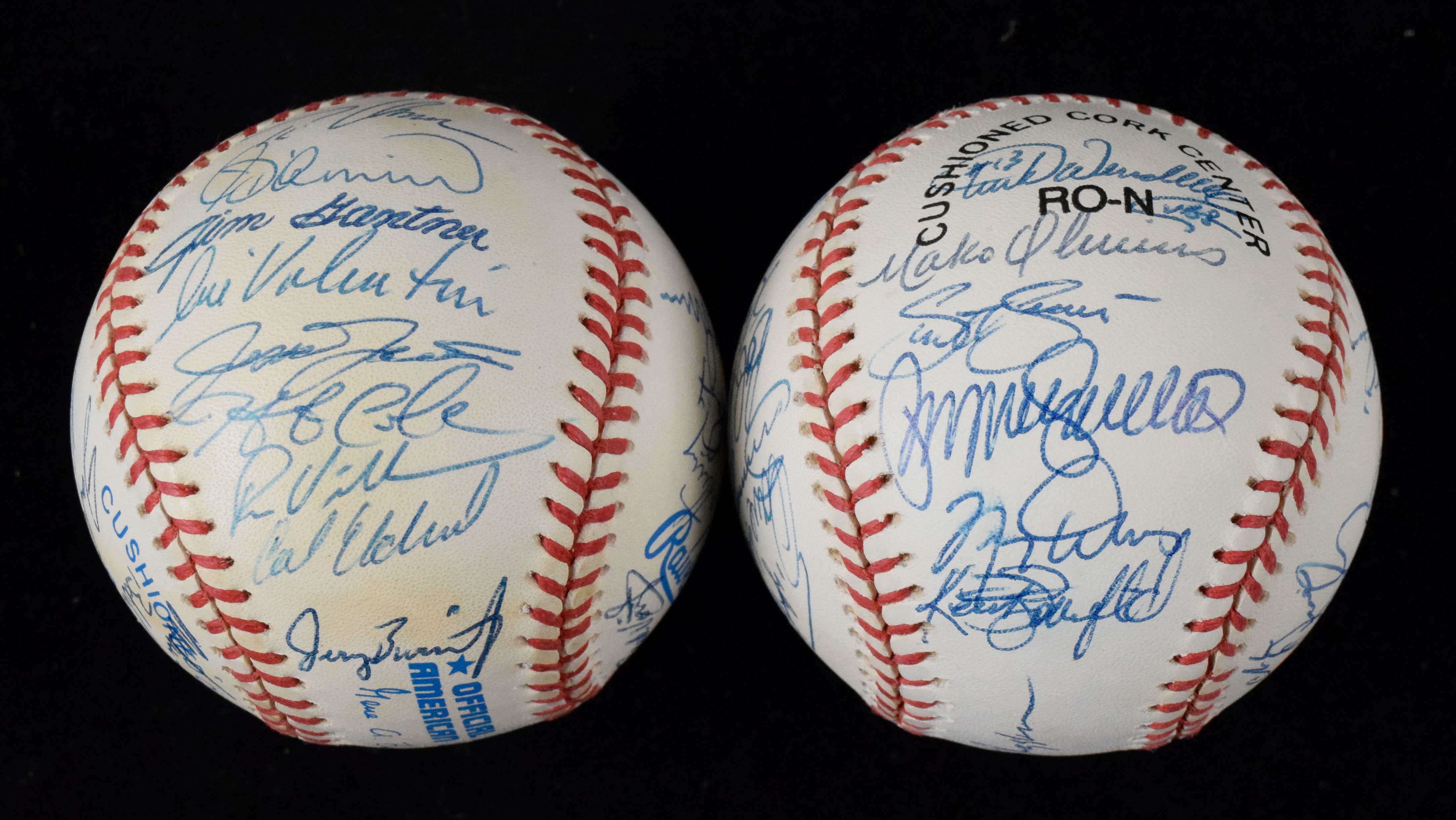 Description:1997 Chicago Cubs & Milwaukee Brewers team signed baseballs with First Interleague Game display stand (EX-NM). Includes L.Coleman NL ball signed by (31) members of the 1997 Cubs: Jim Riggleman, Billy Williams, Ryne Sandberg, Mark Grace, Sammy Sosa, Kevin Orie, Brian McRae, Doug Glanville, Kevin Tapani, Terry Mulholland, Geremi Gonzalez, Bob Patterson, Jose Hernandez, Kevin Foster, Scott Servais, Shawon Dunston, Dave Clark, and others (EX/MT-NM); and G.Budig AL ball signed by (26) members of the 1997 Brewers: Phil Garner, Doug Jones, Jeff Cirillo, Jeromy Burnitz, Bob Wickman, Jose Mercedes, Scott Karl, Jose Valentin, Cal Eldred, Mike Fetters, Mike Matheny, and others (EX toning). Signatures rate 6/7 to 9/10 (avg 8/9) out of 10. Includes a display stand with "First Interleague Game - 6/13/97 Cubs vs Brewers - Wrigley Field" engraved on the placard: EX-NM