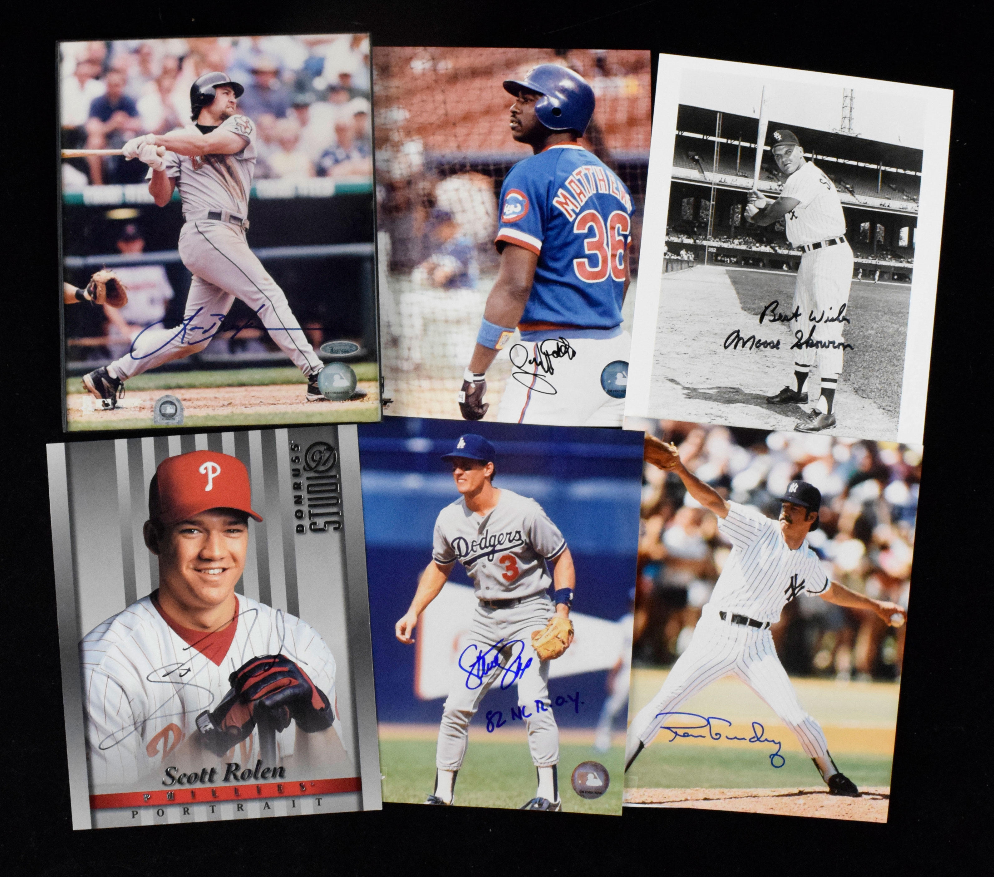 Description:Lot of assorted baseball autographs with some stars and fan favorites (EX-NM/MT). Incl. (35) signed 8"x10" photos: Moose Skowron, Lance Berkman (framed), Scott Rolen, Miguel Tejada, Derrek Lee (framed), Tim Salmon, Steve Sax with "82 NL ROY" inscription, Andruw Jones (framed), Ron Guidry, Victor Martinez (framed), Gary Matthews, Mark Mulder, Mark Prior (framed), Kerry Wood (framed), Adam Kennedy, Huston Street, Todd Walker, Michael Barrett (framed), James Loney, Luis Castillo, Carlos Pena, Nick Swisher (framed), Ryan Dempster, Carlos Zambrano (framed), Glendon Rusch, Scott Chiasson, Todd Wellemeyer, Mike Remlinger, Scott Hairston, Corey Patterson, Juan Cruz, Bobby Hill, Jerome Williams, Matt Murton, Jason Dubois; Baseball HOF Guide To Exhibits pamphlet multi-signed by Don Sutton, Rollie Fingers, Lee MacPhail, and Rusty Staub (personalized); Autograph album pages signed by (24) including Ryne Sandberg & Joe Girardi; 4"x6" photo signed by Bobby Abreu; 4"x6" photo signed by Carlos Delgado; Baseball cards signed by Kerry Wood & Aramis Ramirez; Mini bats signed by Lyle Overbay & Laynce Nix; 1993 typed letter to Andy MacPhail signed "Peter" by Peter O'Malley; and 1993 typed letter to Andy MacPhail signed "Peter" by Peter Magowan. Signatures rate 6/7 to 10 (avg 8/9) out of 10: EX-NM/MT