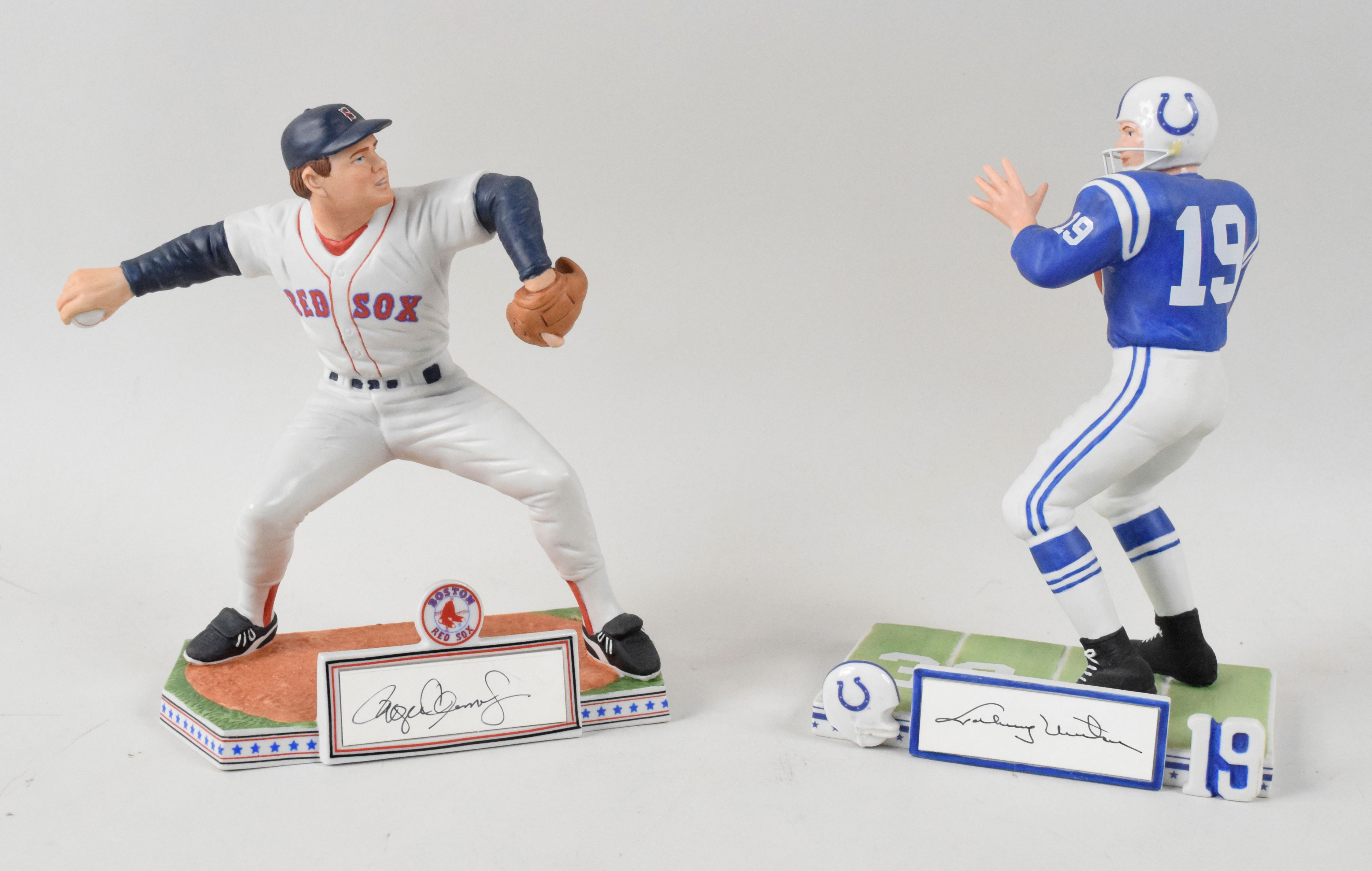 Description:Johnny Unitas & Roger Clemens signed limited edition Sports Impressions statues (NM-NM/MT). Both are signed in black marker. Signatures rate 9 to 10 out of 10. Unitas is #ed 805/975, and Clemens is #ed 929/975: NM-NM/MT