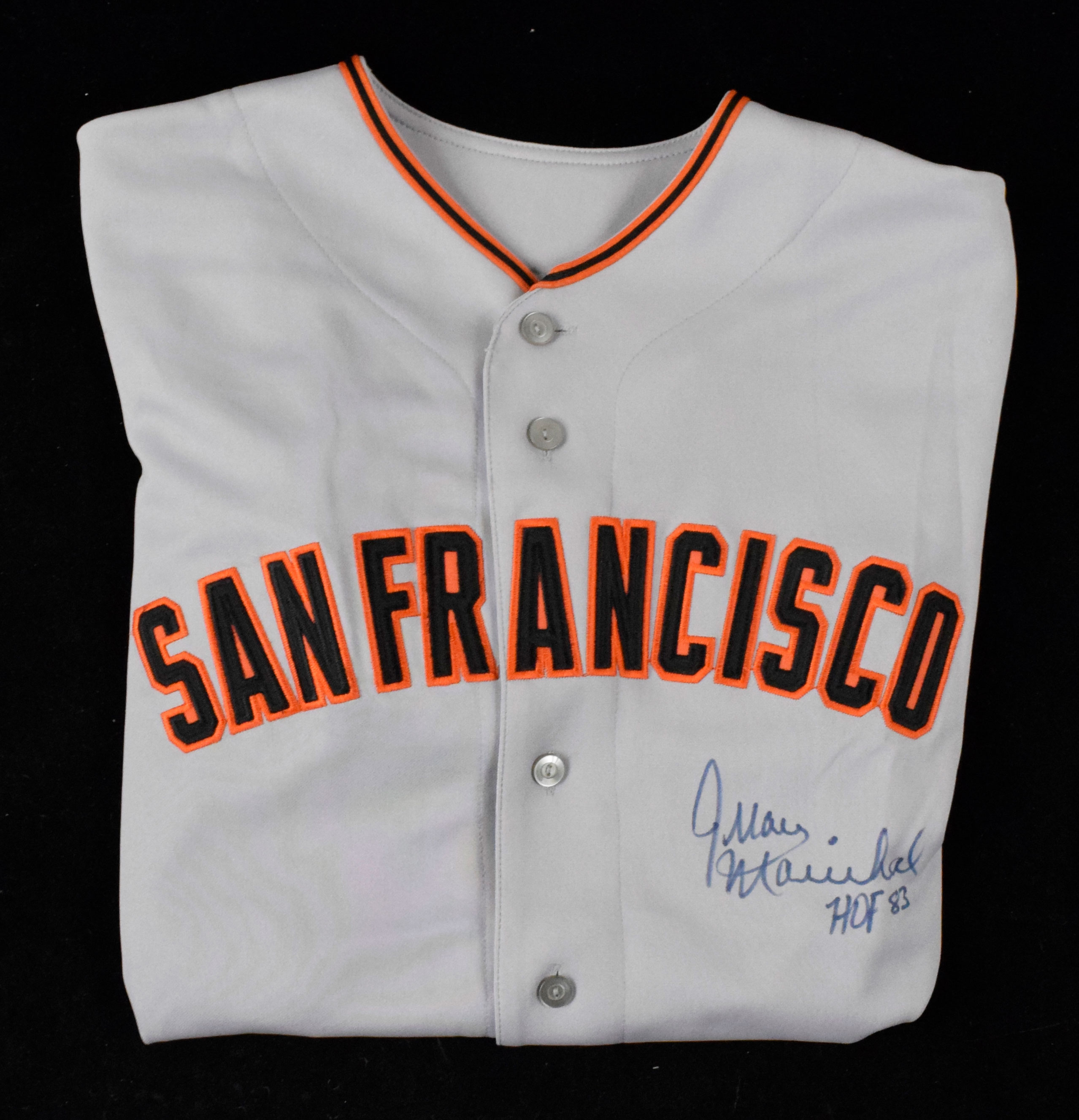 Description:Juan Marichal signed & inscribed San Francisco Giants jersey - MLB Authenticated (NM). Majestic size M Giants jersey signed by Marichal in blue marker with "HOF 83" inscription. Signature rates 8/9 out of 10. MLB Authenticated serial #ed hologram sticker is on the jersey: NM