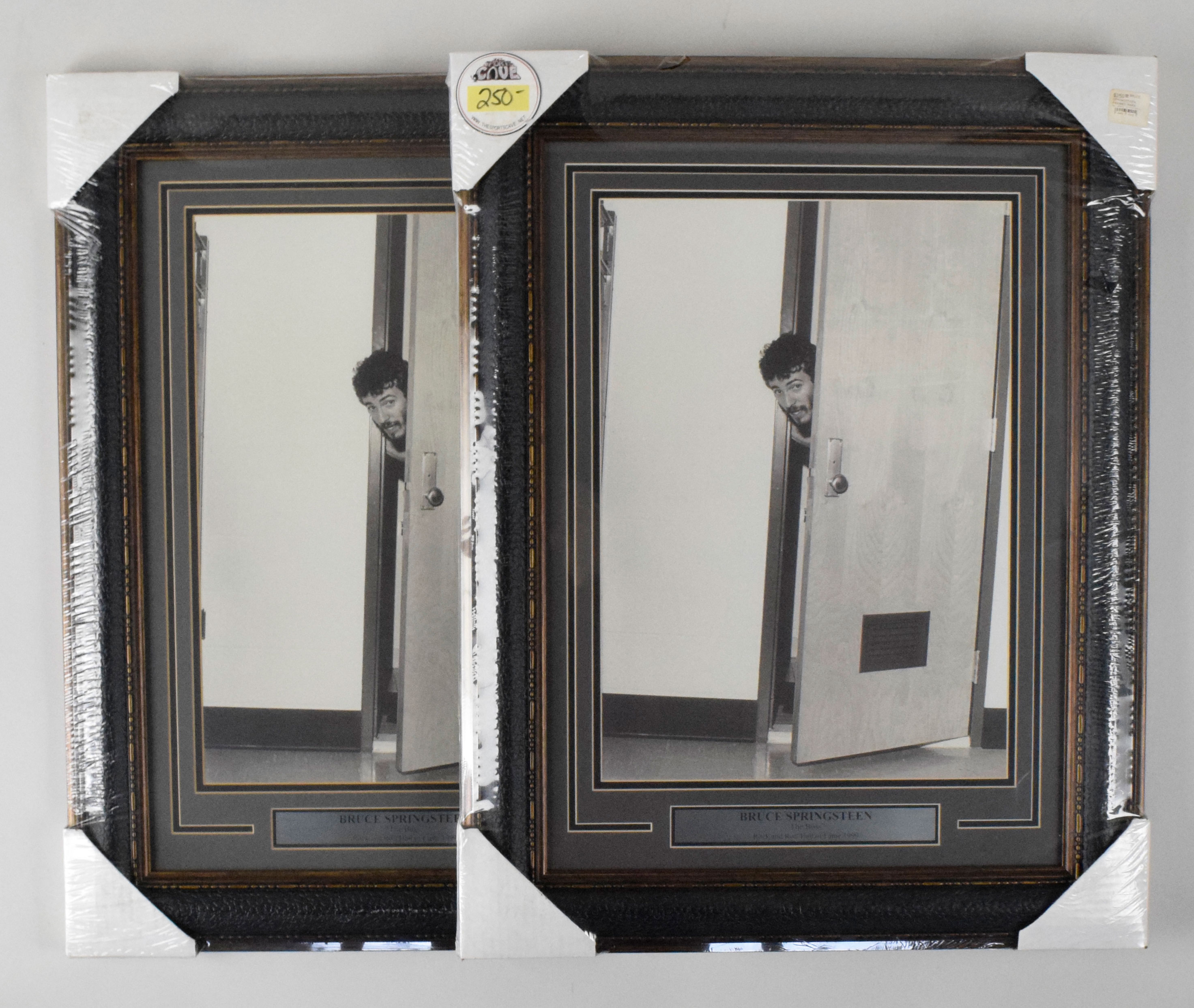 Description:Lot of (5) large framed Bruce Springsteen photos (NM/MT). Nicely done prints of the famous photo by Phil Ceccola depict a scruffy Springsteen peaking out from behind a door, with each attractively framed and matted to 21"x27." Frames were originally packaged for retail sale and have little to no wear: NM/MT.