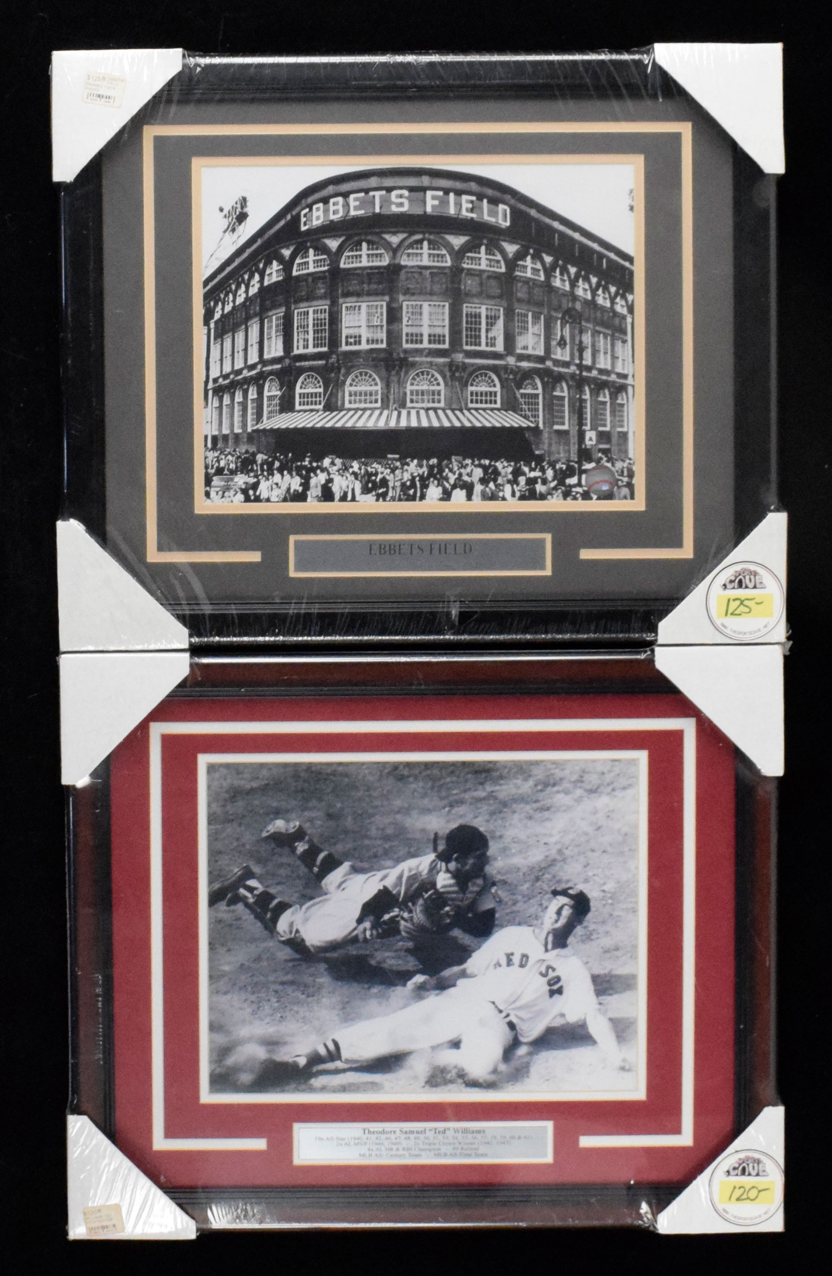 Description:Lot of (4) framed and unsigned photos, including Ted Williams, Ebbets Field (NM/MT). Each is professionally framed and matted to approx. 18"x22," with (1) of Ted Williams and (3) of Ebbets Field. All are unsigned. Frames, originally packaged for retail sale, exhibit little to no wear: NM/MT.