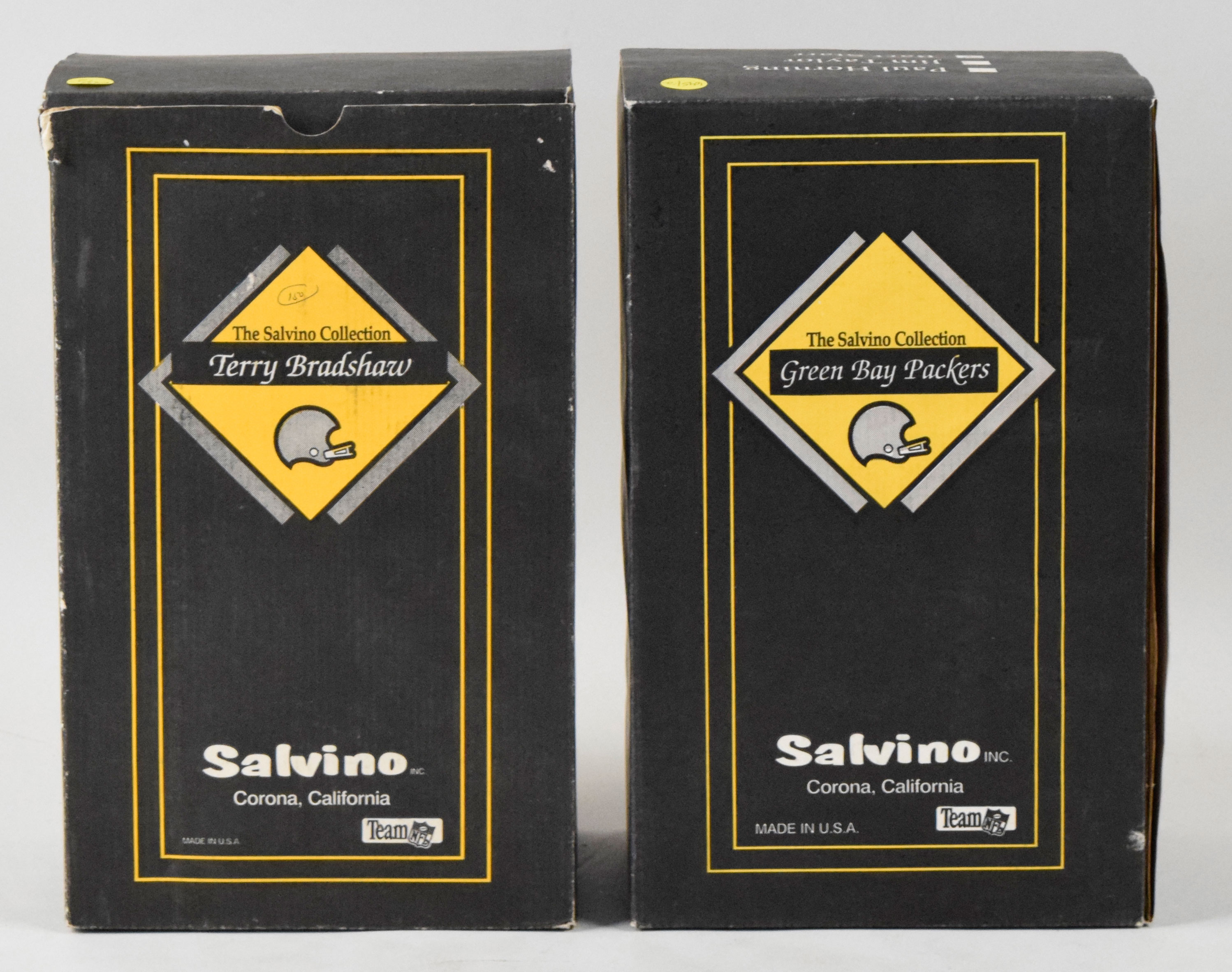 Description:Lot of (2) autographed Salvino figurines in original boxes, including Bart Starr & Terry Bradshaw (Sigs. NM-NM/MT). High-quality lot of limited edition Salvino figurines, with each remaining in its original box and autographed by the player on the base. Includes (1) Terry Bradshaw (#333A/1000) and (1) Bart Starr (#449/500). Signatures rate 7/8 out of 10, and figures appear MT. Boxes have mostly moderate shelf wear: VG/EX-EX.