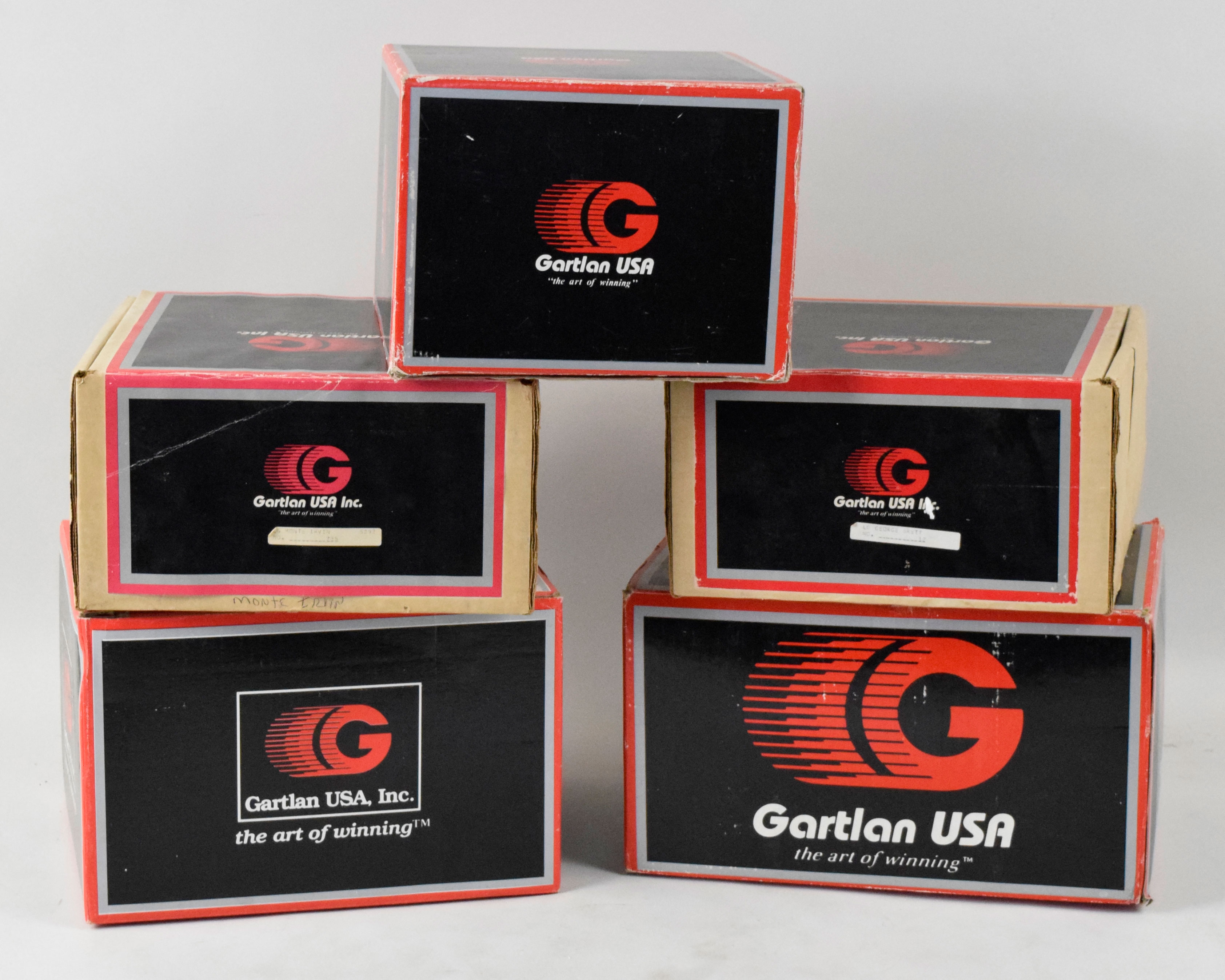 Description:Lot of (5) autographed Gartlan figurines in original boxes, including Brett, Ford & Musial (see description). High-quality lot of limited edition figurines, with each remaining in its original box and autographed by the player on the base. Includes (1) Whitey Ford (right hand broken off); (1) Monte Irvin; (1) George Brett: (1) Frank Thomas; and (1) Stan Musial (internal packaging replaced). Signatures rate 7 out of 10, and some figures have some toning/spotting that potentially can be cleaned up: PR (Ford) - EX. Boxes have moderate to heavy wear, some with apparent moisture damage not affecting the figures: GD-VG.