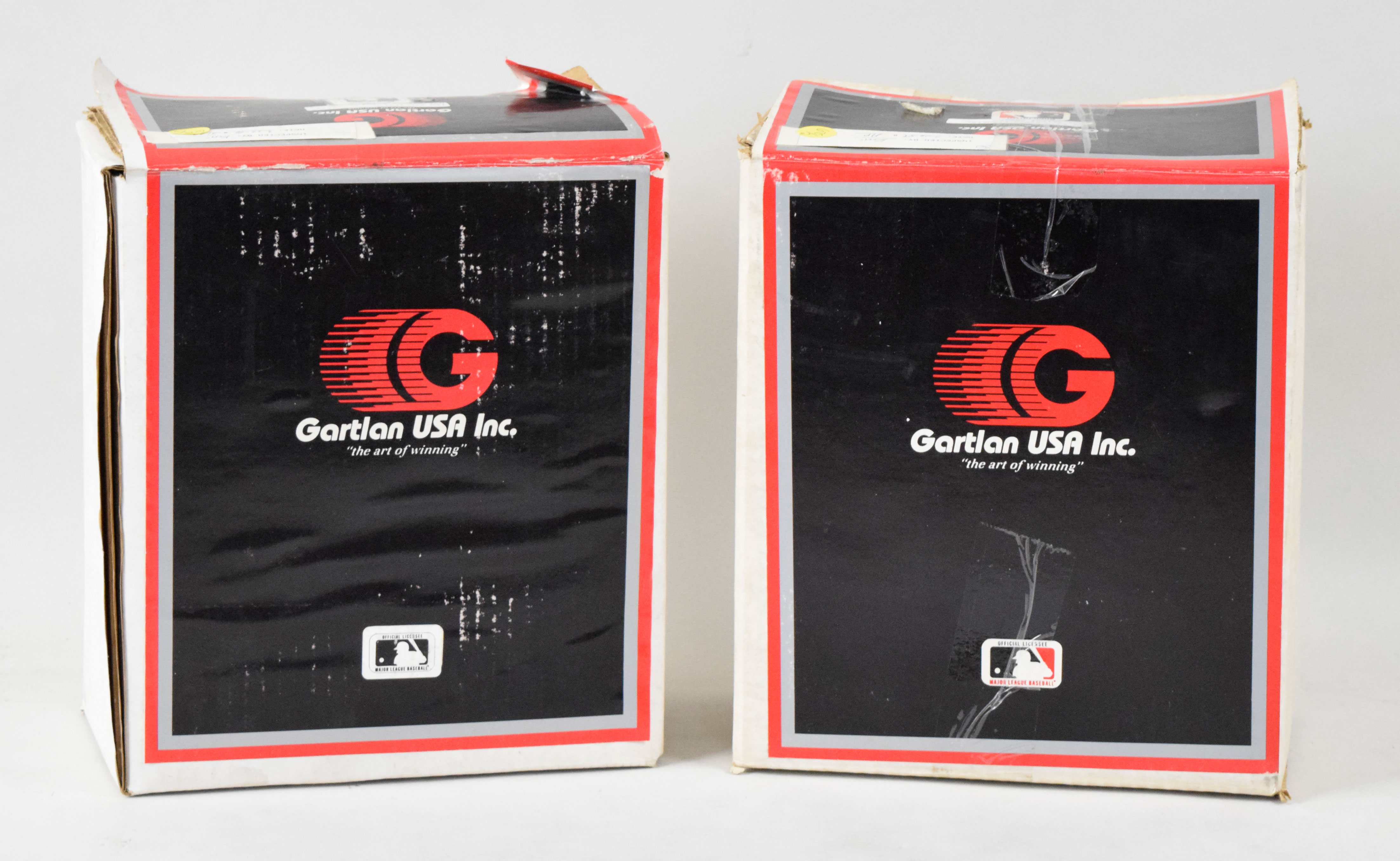 Description:Lot of (2) autographed Gartlan figurines in original boxes, with Ted Williams, Johnny Bench (Sigs. MT). High-quality lot of limited edition figurines, with each remaining in its original box and autographed by the player on the base. Includes (1) Ted Williams (#2133/2654) and (1) Johnny Bench (#d to 200). Signatures 9 out of 10, and figures appear NM/MT. Boxes have mostly moderate shelf wear: VG/EX-EX.