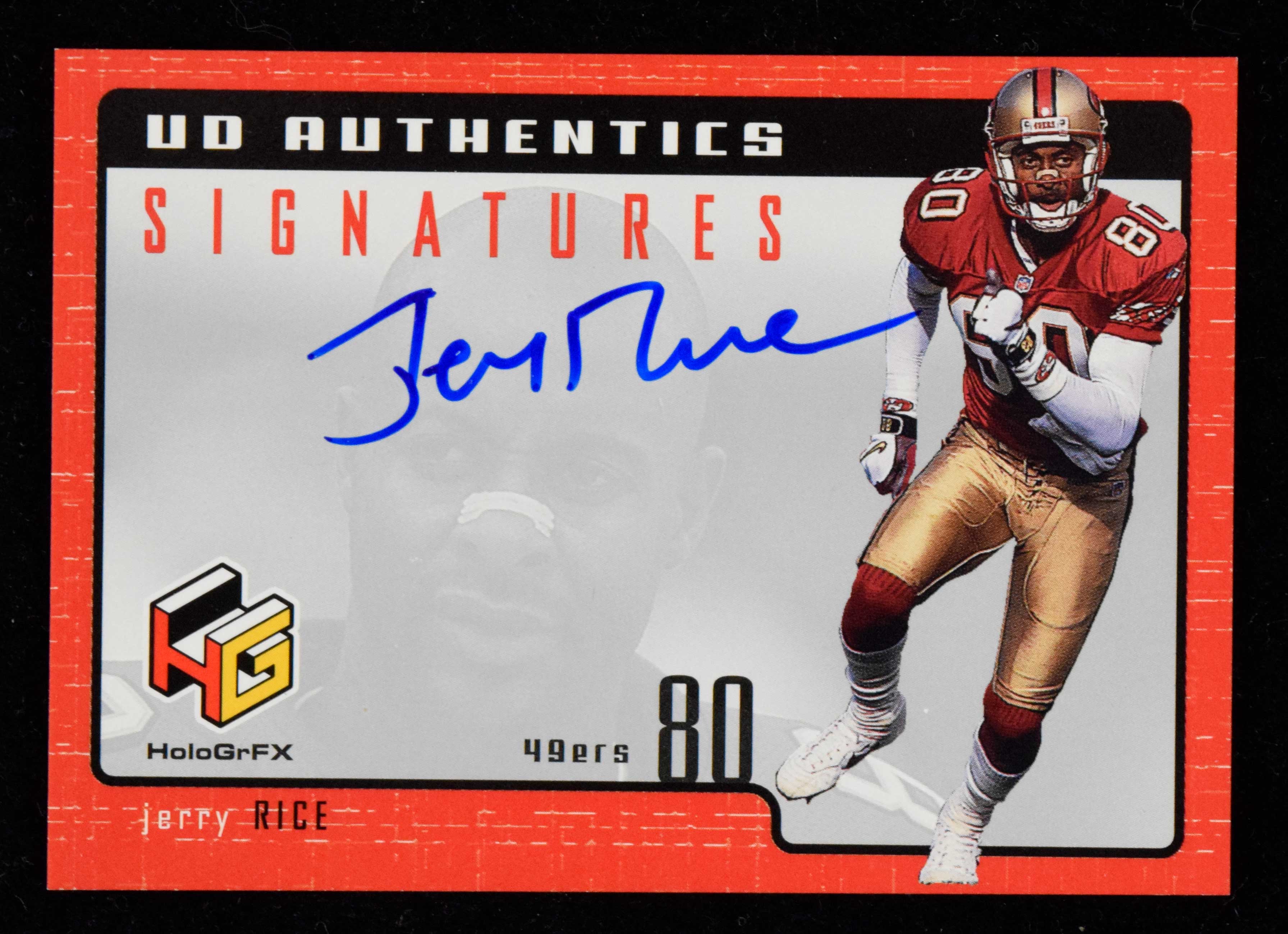 1999 Upper Deck HoloGrFX #JR Jerry Rice auto (NM) Pack fresh with strong autograph: NM
