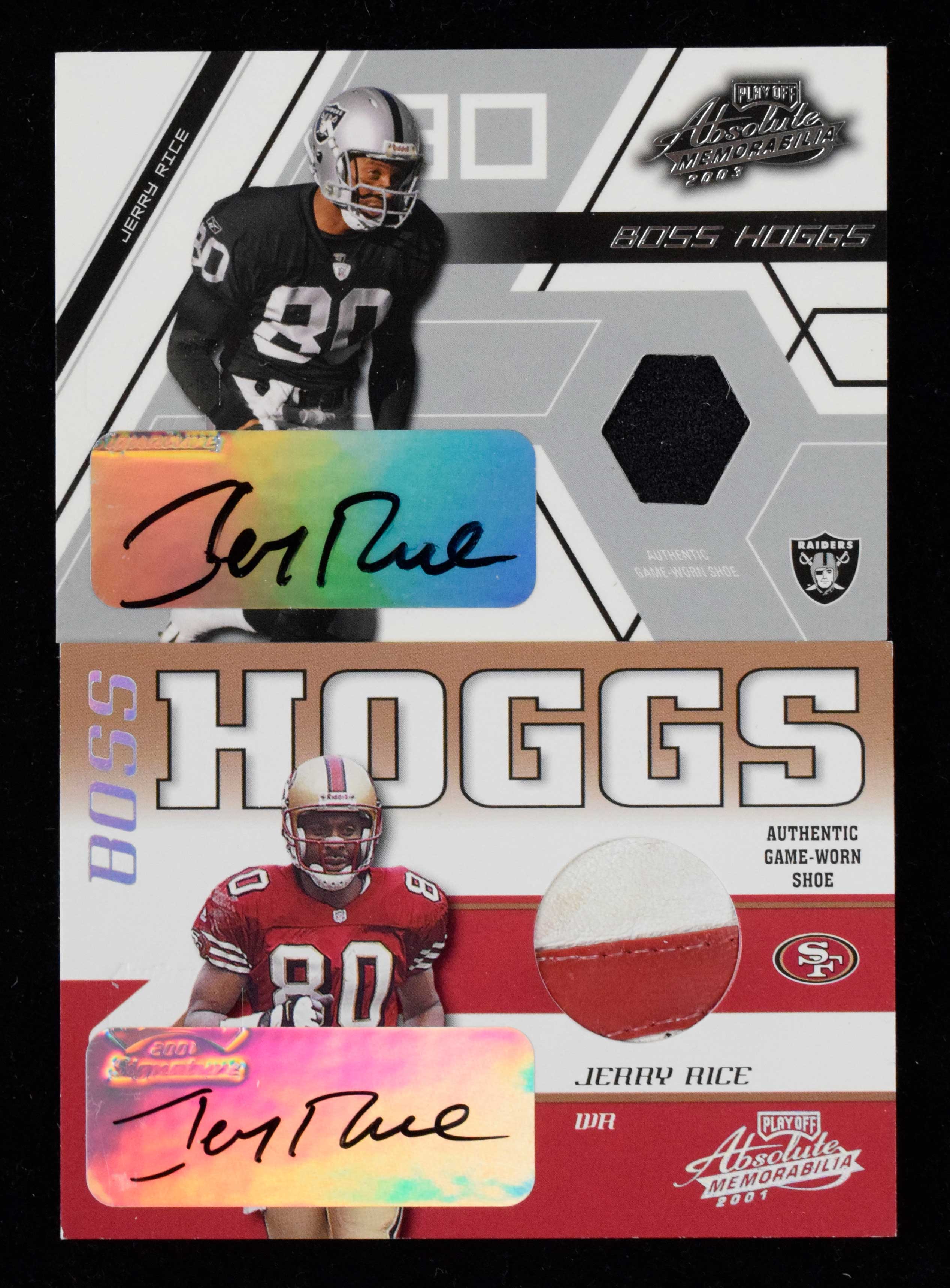 2001 and 2003 Playoff Boss Hoggs Jerry Rice auto inserts (# out of 125) (EX/MT-NM) Includes 2001 (EX/MT-NM) and 2003 (NM): EX/MT-NM
