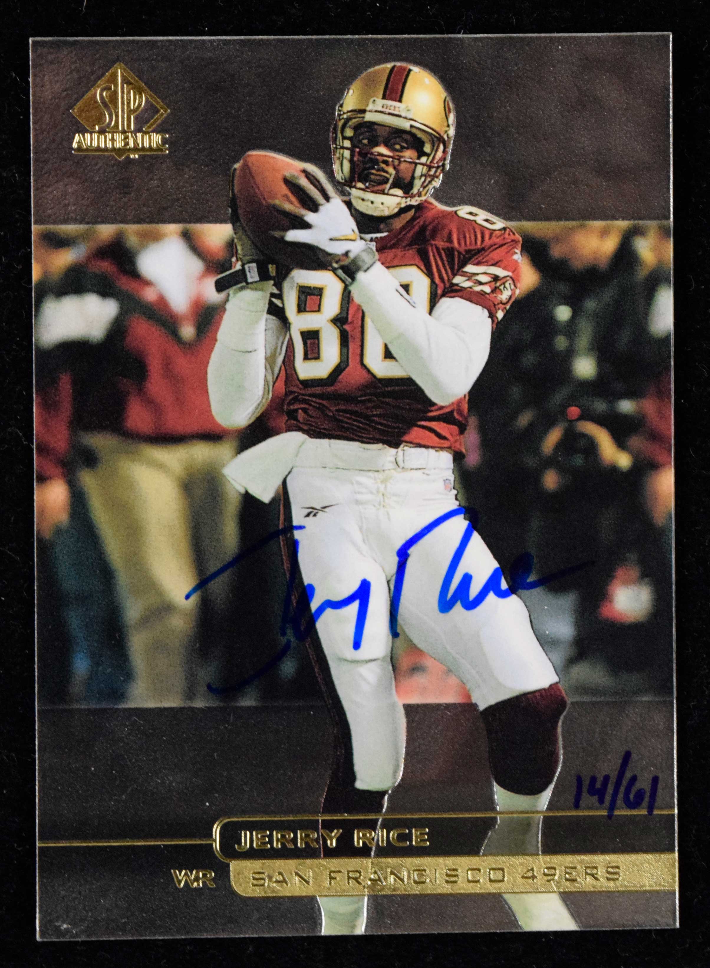 1999 SP Authentic Buyback Autograph Jerry Rice ("14/61") (EX/MT) Limited edition numbered buyback includes the UDA COA: EX/MT